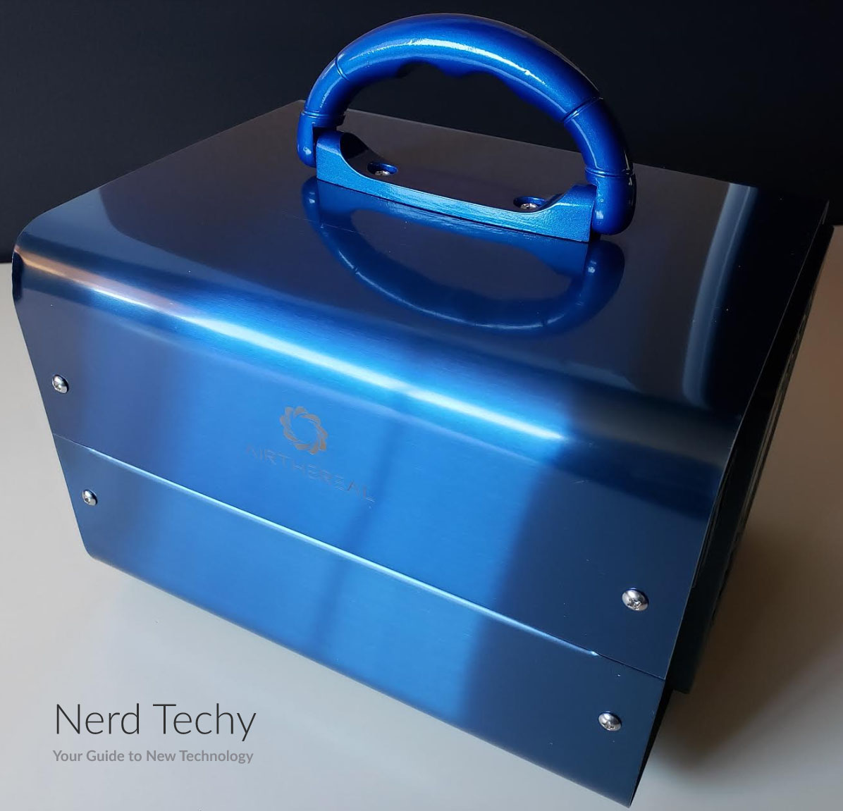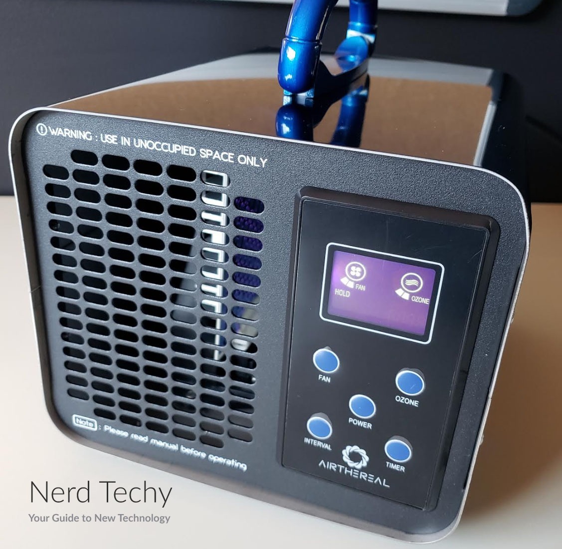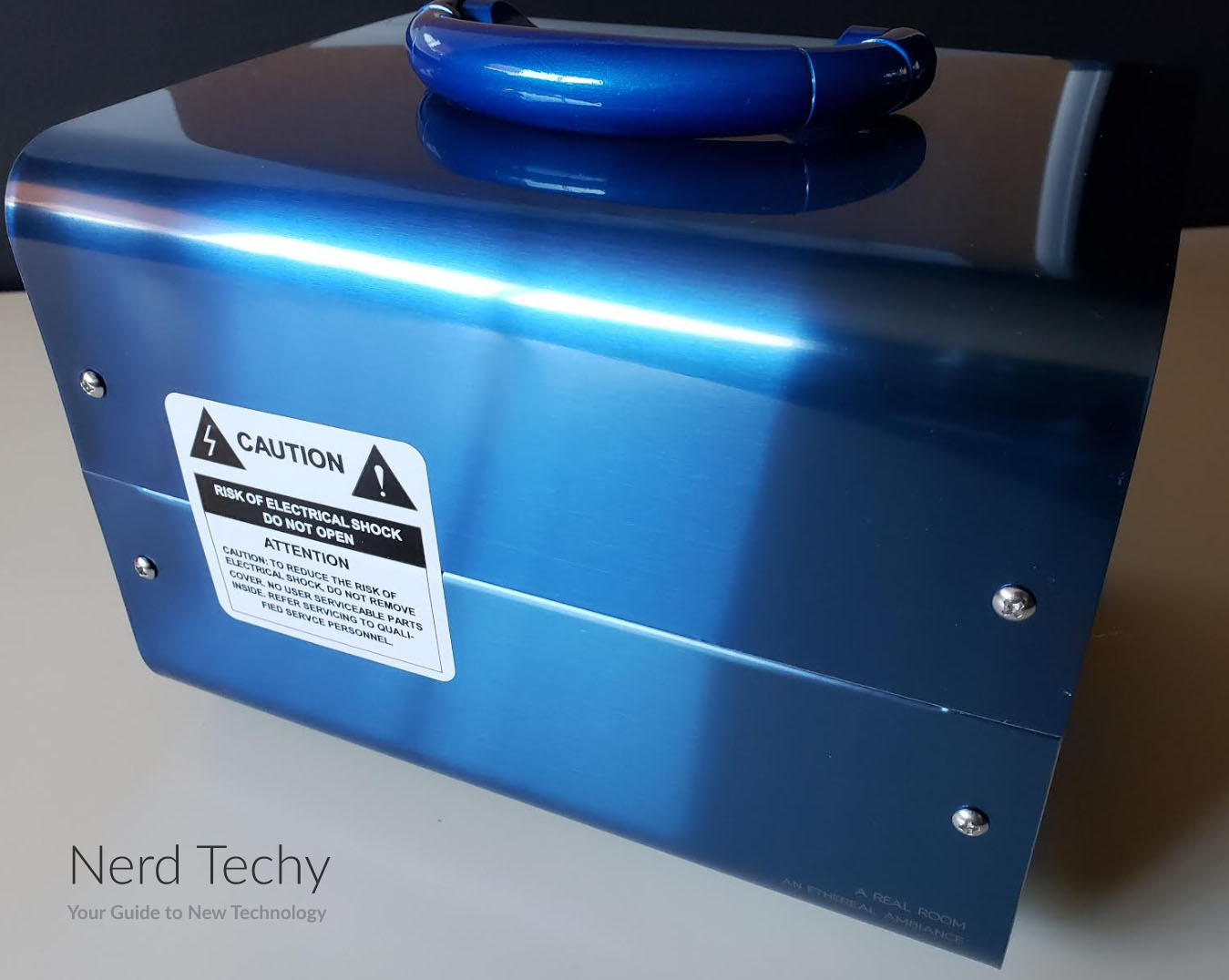 的Airthereal MA10K-PRODIGI臭氧发生器是一个坚固的单位。它由304级不锈钢制成,既容易清洗,又耐腐蚀。它有一个吸引人的,电光蓝色完成,与黑色钢烧烤在前后。它长9.3英寸,宽7.1英寸,高6.8英寸,重6.6磅。这使得它相对于这个尺寸来说比较结实,但它很容易携带。上面有一个可折叠的把手,可以用来把它从一个房间移动到另一个房间。
