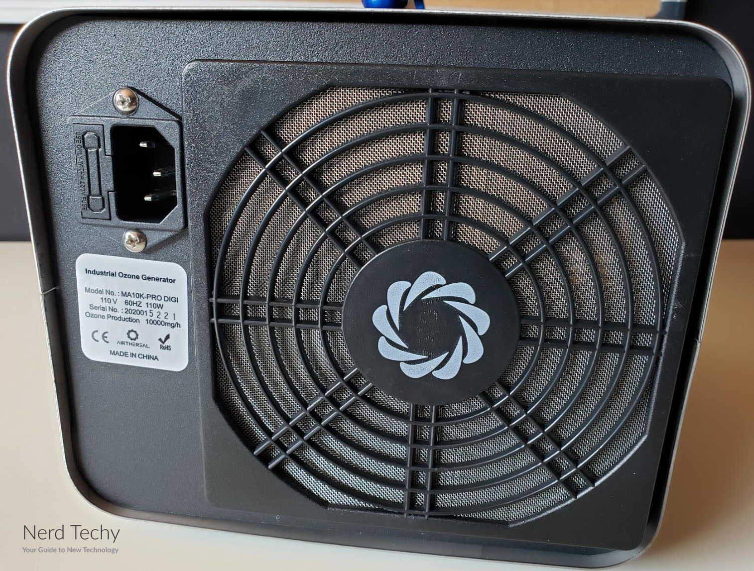 在MA10K-PRODIGI的前面,你会看到一个控制面板,用于操作机器的所有功能。在顶部,有一个易于阅读的LCD显示屏。这可以直观地读出MA10K-PRODIGI的所有基本功能。还有一个风扇转速指示器,不言自明。有一个臭氧浓度计,它跟踪空气中臭氧的相对浓度。还有一个倒计时,12或24小时间隔显示。我们将在下一节中解释更多。液晶显示屏下方有5个按钮。这些控制风扇,臭氧发生器,机组电源和定时器功能。因为你可以独立于臭氧产生来控制风扇,你可以使用MA10K-PRODIGI进行通风。 This makes it easy to blow air out a window when you’re done treating the room.