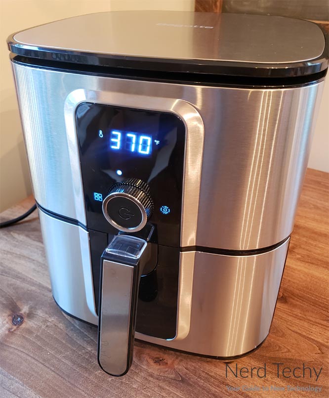 使用旋钮,您可以将0从零到60分钟或在其中任何位置调整的时间。大多数空气油炸锅食谱只需要几分钟才能做饭。那说,如果你正在像烤肉一样烹饪的东西,你就会想要运行更长的烹饪周期。关键是,您有选择,控制方案直观。此外,您可以从170到400度的5分钟增量调整温度。在其最低的环境中,对于在烹饪剩余的饭菜时,它很棒。换句话说,它几乎运行了你可以从空气炸锅中所期待的赌场。
