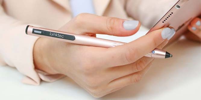 TheLynktec Apex Fusion是一个很好的点笔塑造了sta一样吗ndard pen. It measures just a hair under 6” long, ensuring that it will be comfortable to hold and easy to use. It’s available in four attractive metallic colors. These colors included black, gold, silver, and rose gold. If you’re comparing it to the rose gold that Apple produces their iPhones in, you’ll find that this one is much more of a pink. But for us, we really enjoy the vibrant look of the stylus. A stylus offers you so much more than a standard pen, and you can tell this just by looking at the Lynktec Apex Fusion. There have been many styluses that come and go, but none can come close to rivalling this model in terms of visual appeal.