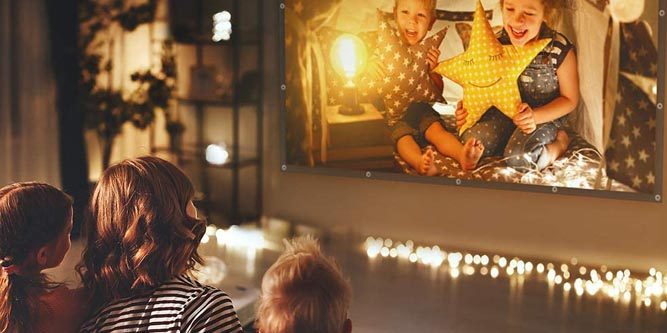 由于低反射率,图像看起来很好,很清晰。没有眩光,只是你所投射的视频的忠实再现。屏幕本身的长宽比为16:9,这是现代投影机的标准。这使得人们可以很容易地观看最新的好莱坞电影,甚至智能手机视频。此外,屏幕的设计允许160度的观看角度。即使你坐在屏幕旁边,你也可以看到大量的细节。这使得100JY对于任何规模的群体来说都是一个很好的选择。