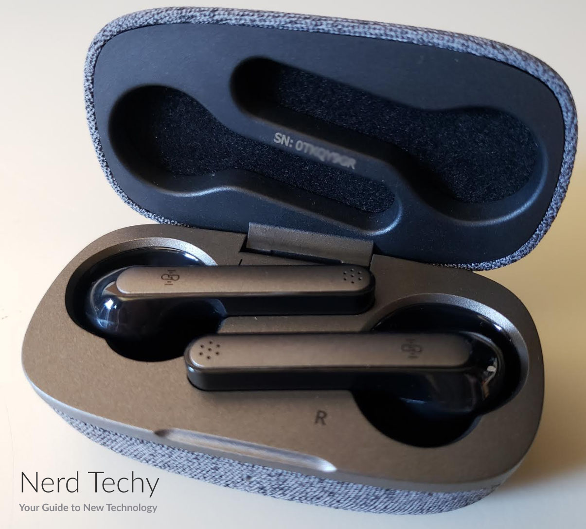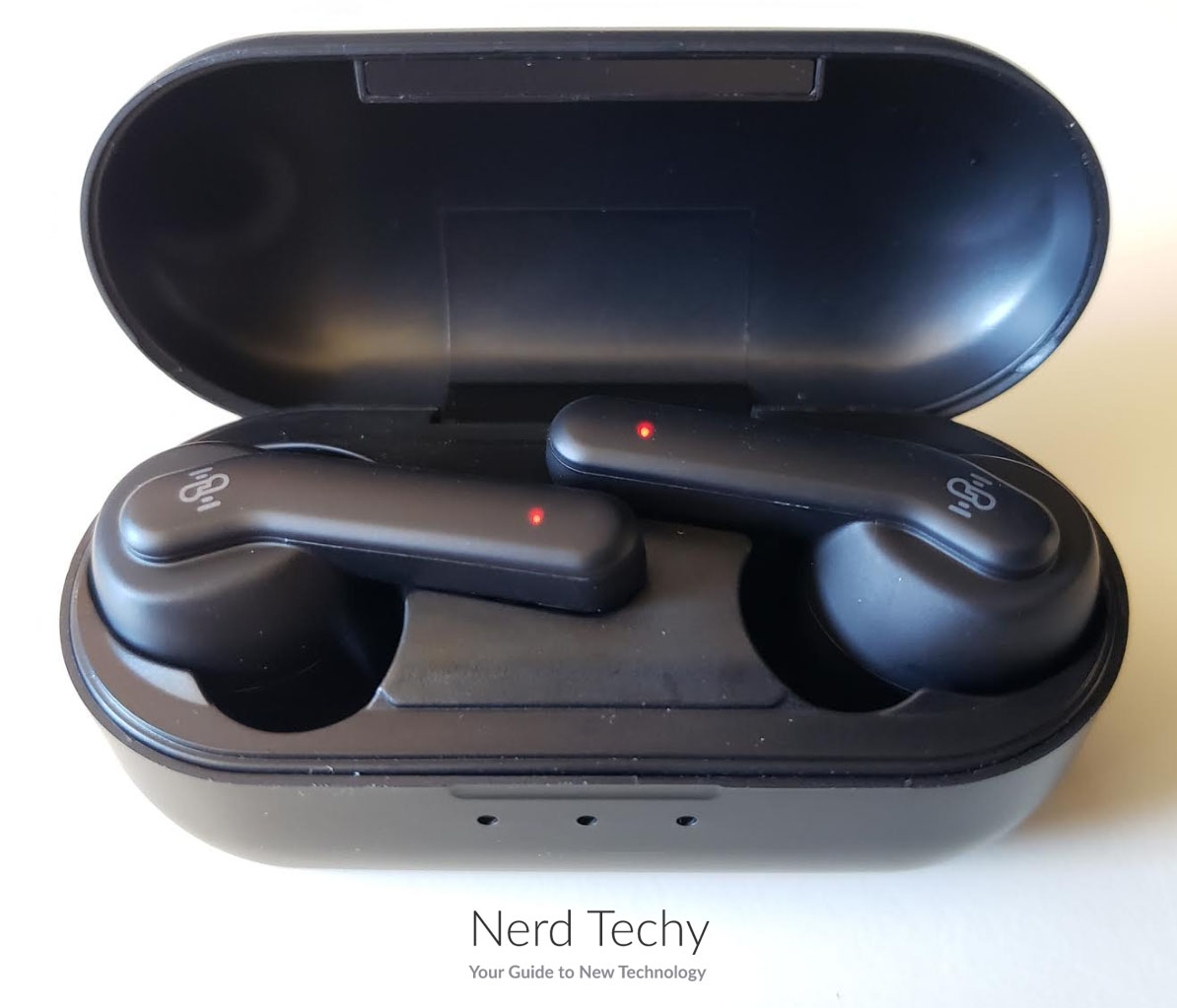 充电箱比BT-BH023略大,宽度为2.95英寸,深1.54英寸深,1.14英寸厚。无论如何,它仍然是口袋大小且易于运输。它还具有柔软的圆形边缘,以满足舒适性。壳是不寻常的。它没有塑料饰面,它具有灰色布料。这使得它甚至更柔软,携带更舒适,但难以清洁。前面有一个LED,让您知道耳塞是否积极充电。所有这些都具有与BT-BH023相同的18个月保修和90天的返回窗口。