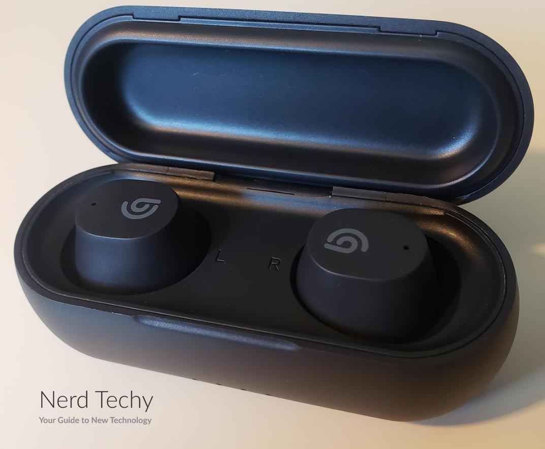 和大多数无线耳塞一样,SiFi II耳塞有一个便携盒,可以兼作充电器。这款手机壳比大多数手机壳更吸引人,因为它有两种不同的颜色可供选择。除了标准的黑色,你也可以订购深钴蓝色。无论你选择哪种颜色,缎面处理都很容易保持清洁。它又长又薄,椭圆形的设计让它很容易从口袋里拿出来。而且它相对轻量级,所以可移植性不是问题。你可以把它放在任何地方,可以放在口袋里,也可以放在包里。