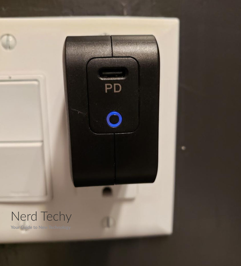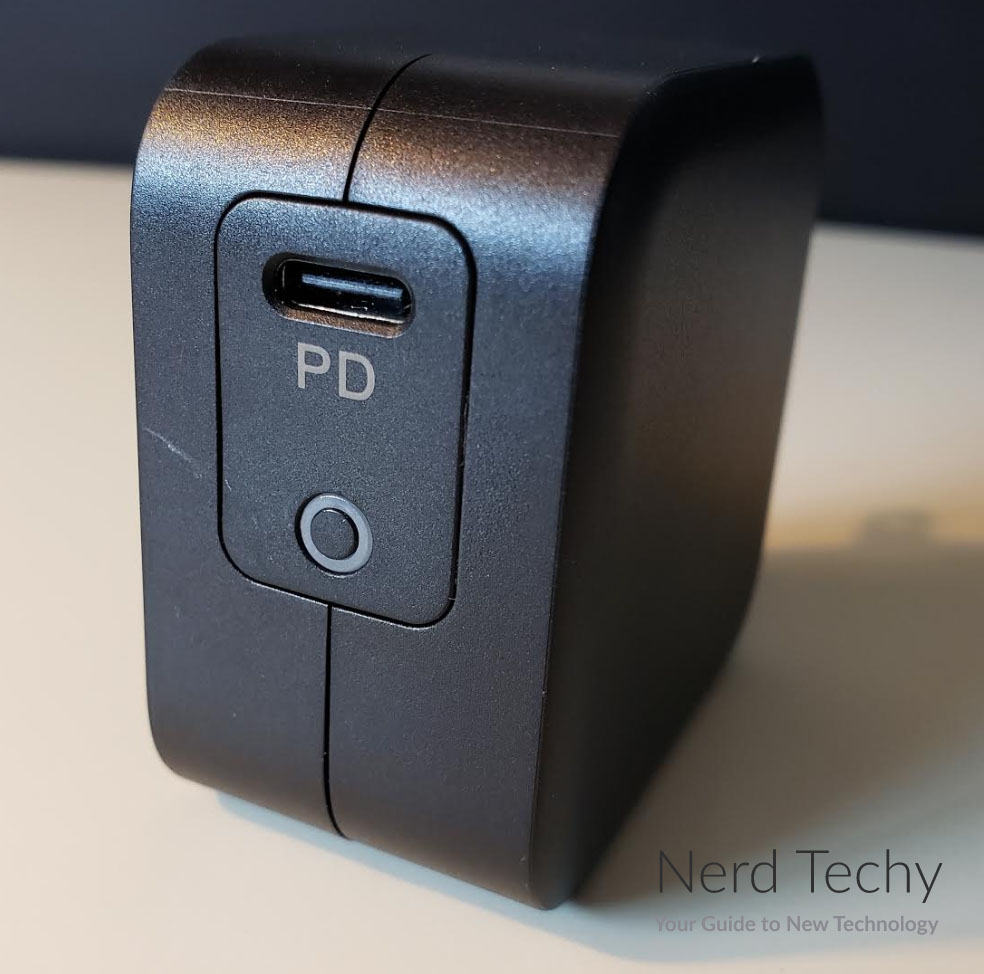 这charger features a foldable and convertible plug. The twin pins for the charger fold straight into the unit so that they don’t scratch any other items in your traveling bag or become bent or broken over time. On the other side of the charger, there’s a USB C connection port so you can use this charger with practically any modern mobile device or computer you can imagine. So long as they also use USB C, you’ll be able to make it work. You also know immediately if charging is taking place thanks to the LED light right beneath the connector port; it lights up if everything is going smoothly.