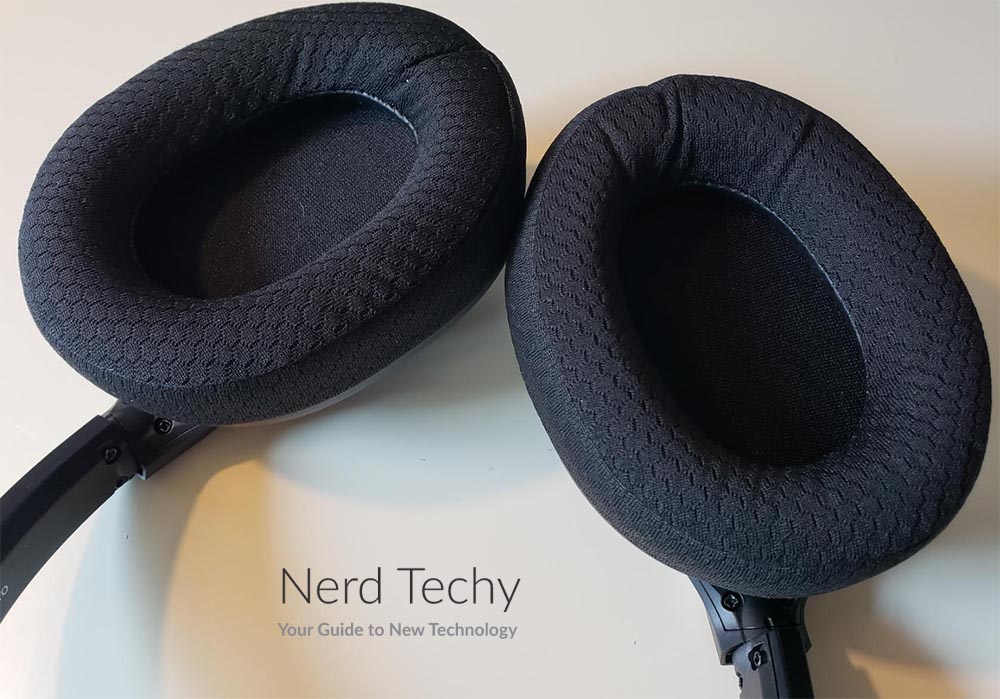 简而言之,它降低了你头部顶部的压力,并防止耳机耳杯拖下来对你的耳朵太用力。这对于耳朵大的人来说尤为重要。此外,耳杯由编织网材料制成,既能吸湿又能被动冷却。虽然我们大多数人的耳朵周围不会经常出汗,但有这种网眼织物很好,因为它既舒适又实用。