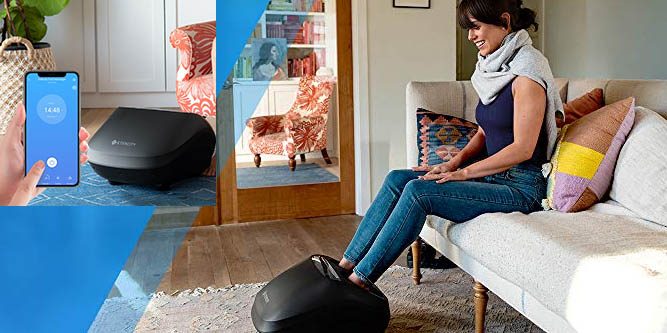 这款智能脚部按摩器的特点是布质脚部口袋,非常舒适,并提供足够的垫子,防止你的脚趾在应该被照顾的时候受伤。当你把脚插入垫子时,垫子就会充满暖空气。这是我们提到过的热疗法,但它也能让你的脚在按摩时保持位置。