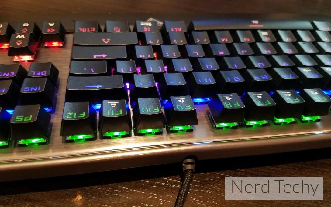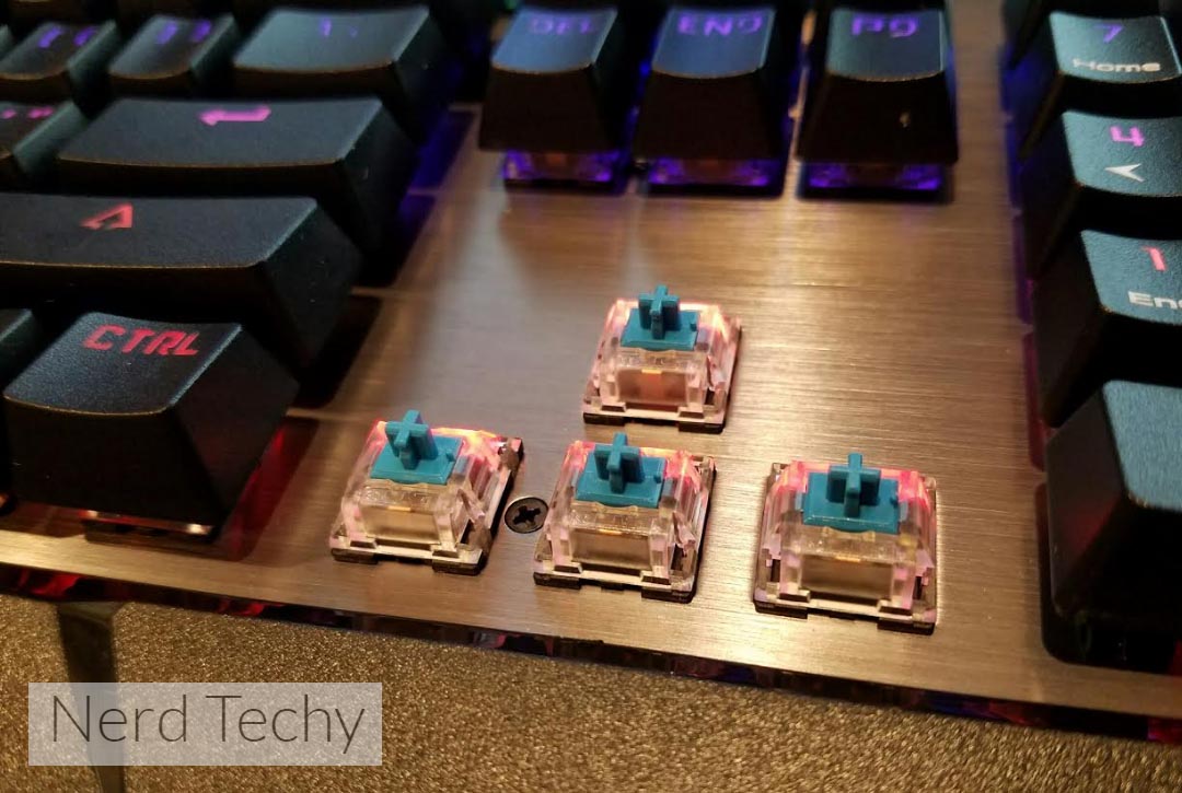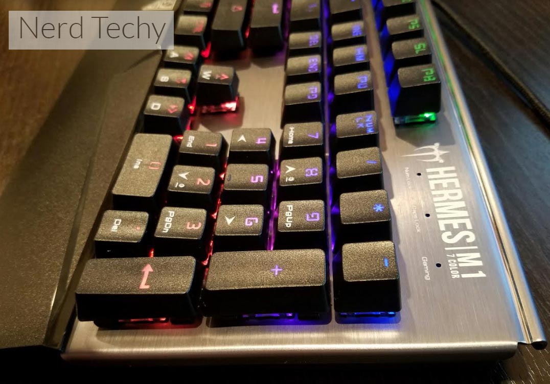现在,并非所有开关都相等。有几个不同的版本。可以对开关进行校准,以达到压力,重置点,响度和速度。大多数用户在蓝色,红色和棕色之间选择。此键盘中使用的开关是蓝色品种。它们有点重,有点更大,并且具有任何开关中最触觉的反馈。对于打字员来说,这些被认为是最好的。一些游戏玩家更喜欢红色开关,因为它们非常轻巧易于推动。我们认为,这打破了机械键盘的全部目的。蓝调是市场上最畅销的人。 Within a few minutes of using one, you’ll be completely used to it. For this reason, we couldn’t be happier with the switch choice in the Hermes M1.
