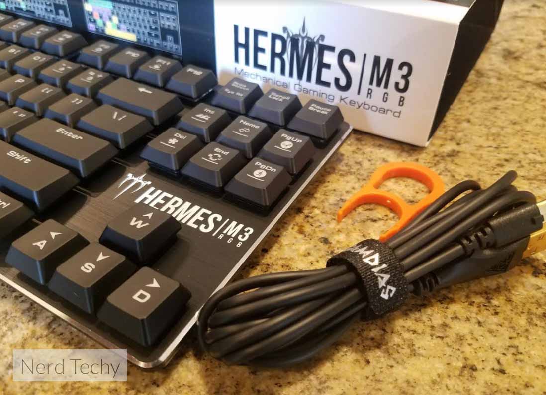 One of the advantages of an 87 key mechanical keyboard is that it doesn’t take up much room when you compare it to models that feature more keys. The M3 measures in at 354 mm x 128 mm x 25 mm (13.9 in. x 5 in. x 1 in.) and only weighs a hair over 1 lbs. We prefer the M3’s 87 key format because it lacks the filler that some keyboards contain. They feel like filler to us, anyway. Adding to the keyboard’s portability is its removable micro-USB cable. Everything about the size and design of the M3 just screams convenience.