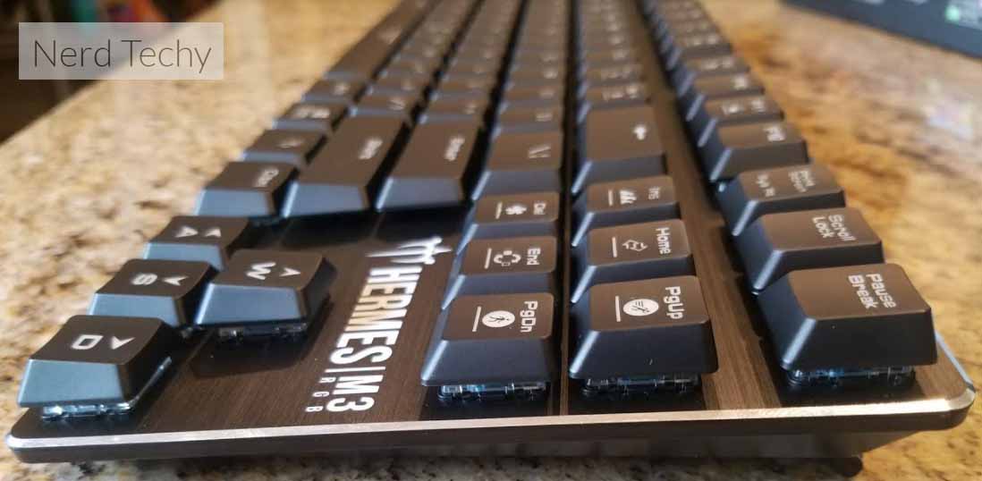 Let’s talk a little bit about the low-profile design because it is clearly one of the standout features. The Hermes M3 RGB is gorgeous. There is no other way to describe it. Not only does the device look gorgeous, but it feels gorgeous. The design helps keep keystrokes precise, the response fast, and the actuation accurate. The design sort of reminds us of a low rider vehicle. There is something about it, besides the small form-factor, that just works. The keys feel luxurious to the touch and the profile oozes sophistication.
