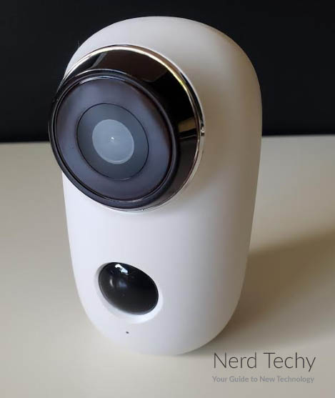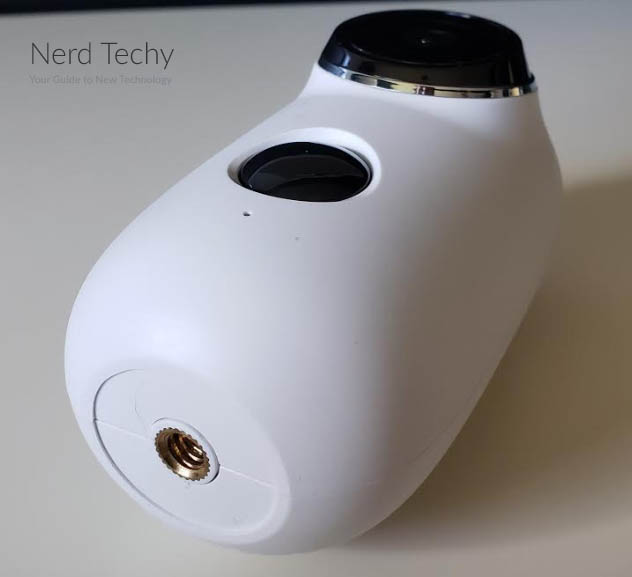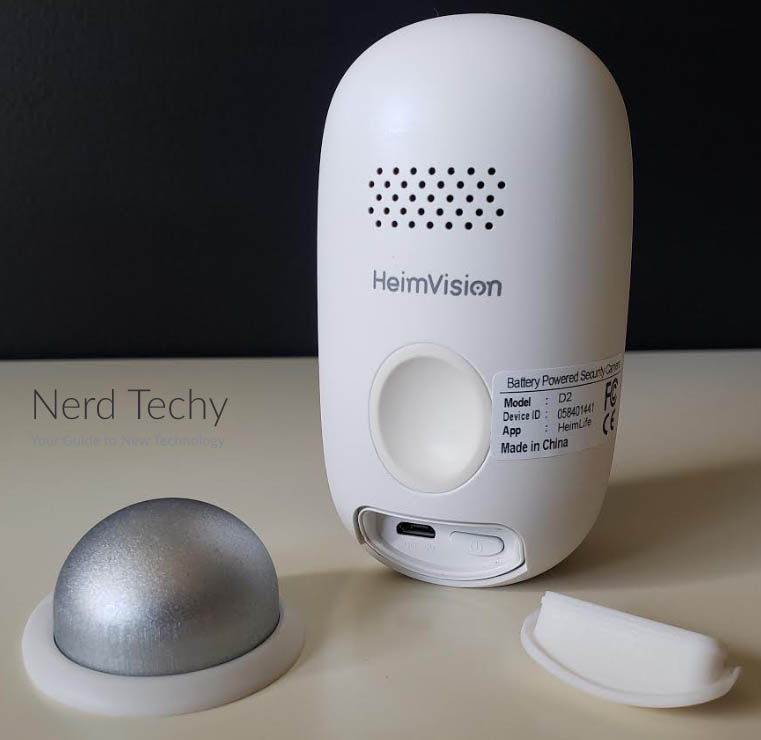 在本机的前部,镜头位于顶部。它略微突出,并且被镀铬环包围,这很容易在眼睛上。也就是说,它肯定看起来像一台相机,这就是你想要的。正如我们所说,你最好的赌注是威慑,一个明显的相机就可以了。在镜头下方,有一个圆形的红外传感器,激活HMD2的运动激活。在非常底部,一个小孔容纳相机的重置按钮。