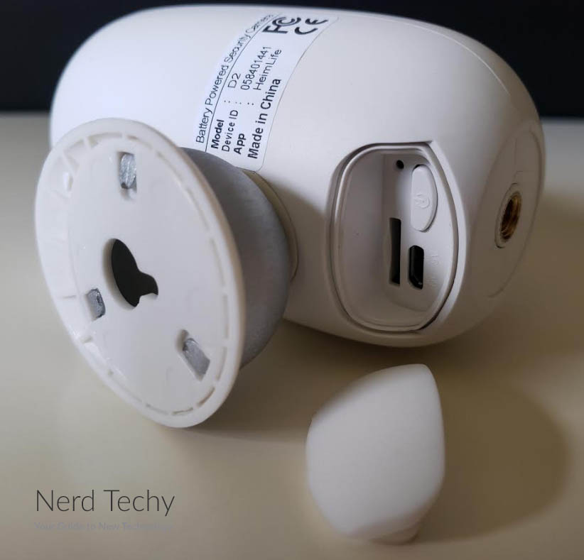 HMD2安全摄像机具有光滑的白色ABS塑料盒,比宽度高。它尺寸为3.9英寸,2.3英寸宽,深度2.1英寸。它连接到360度的球和插座安装件,易于安装。你有几个选择。最简单的只是使用安装螺钉永久连接它,但这并不总是理想的。如果您不想在墙壁上放入任何孔,您也可以使用3M粘合剂贴装。如果您要这样做,请务必首先彻底清洁该区域。如果您吝啬准备,胶粘剂也不会握住它。