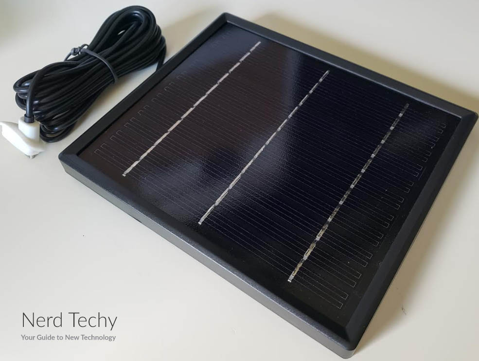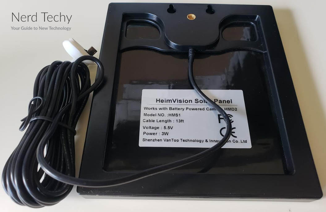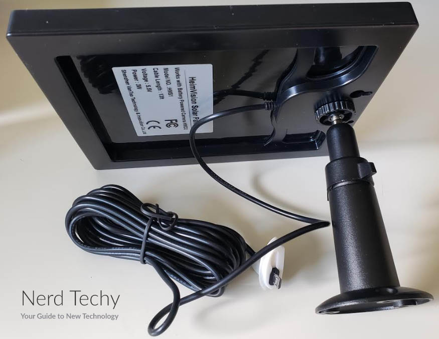 HMS1太阳能板,也就是等式的另一半,是一个每边7.8英寸的正方形。它有2.5英寸厚,配有360度安装。然而,它重1.31磅。在这样的重量下,它对于粘合座来说有点重。你得找个地方把它钉在外墙上。为了确保持续的充电,将太阳能板放置在阳光充足的地方很重要。在大多数情况下,它将提供3瓦的电力,但如果它在阴凉处,它的性能不会很好。幸运的是,内置USB线有13英尺长。如果需要,你可以把它放在一个角落或在一个突出的顶部,以获得更多的阳光。