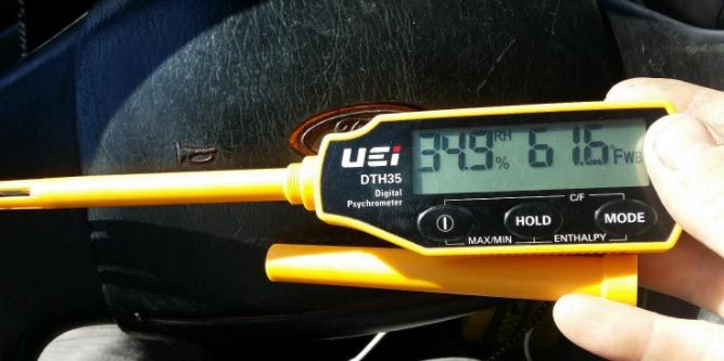 这DTH35 can operate between 32 and 122 degrees Fahrenheit. This covers most ordinary circumstances where you’ll actually care about the humidity. The lower limit for the wet bulb and dew point readings is even lower, at -69 and -90 degrees respectively. You can measure the full gamut of relative humidity, from 0 to 100 percent. Once you’ve taken your readings, you can save a min/max reading. This will allow you to recall your highest and lowest readings at the push of a button. If you want to start fresh, you can also reset these readings.