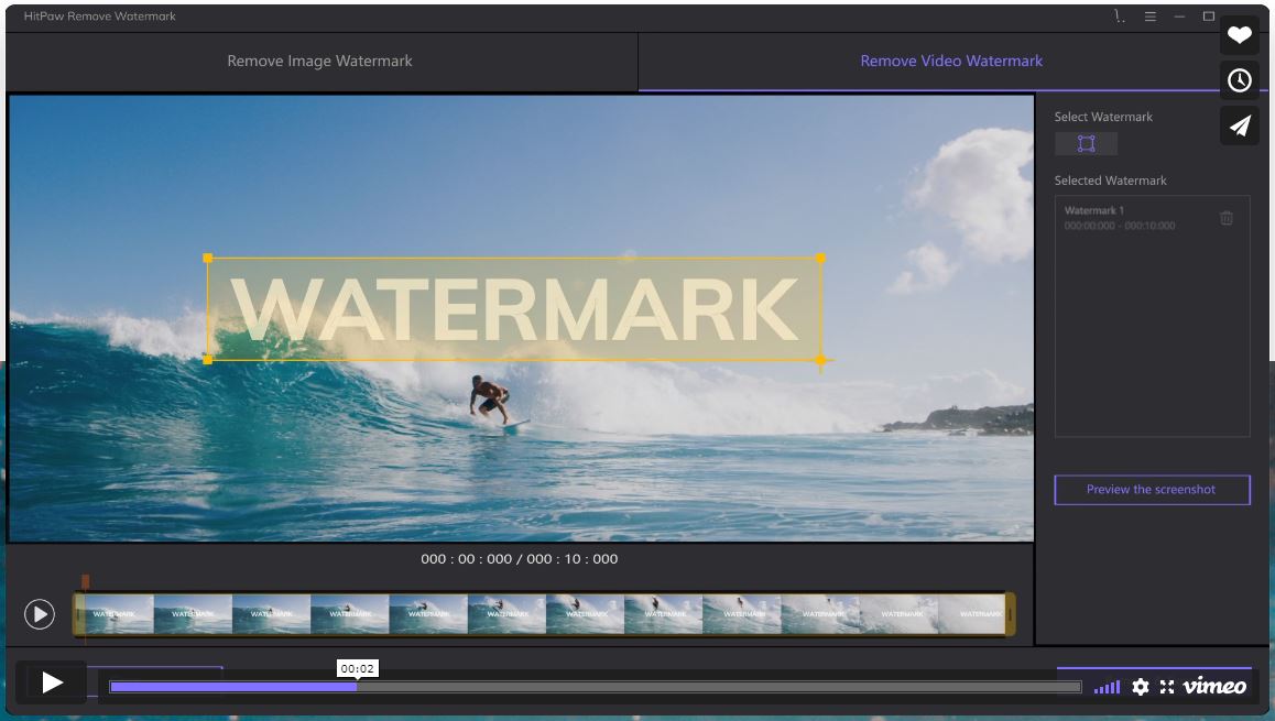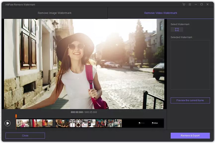 正如我们已经解释过的,HitPaw水印去除软件是用来去除水印的。事实上,它看起来很像标准的编辑软件,有一个预览窗口和视频的时间轴视图。但是,你不会发现剪切、剪接和其他编辑功能。你唯一能做的就是去除水印。