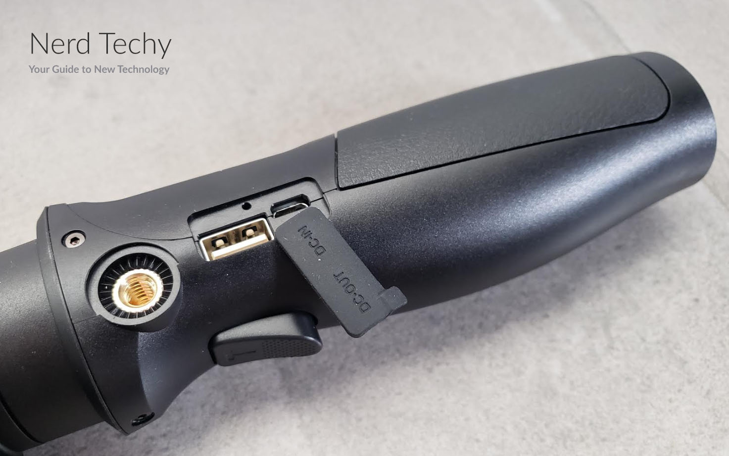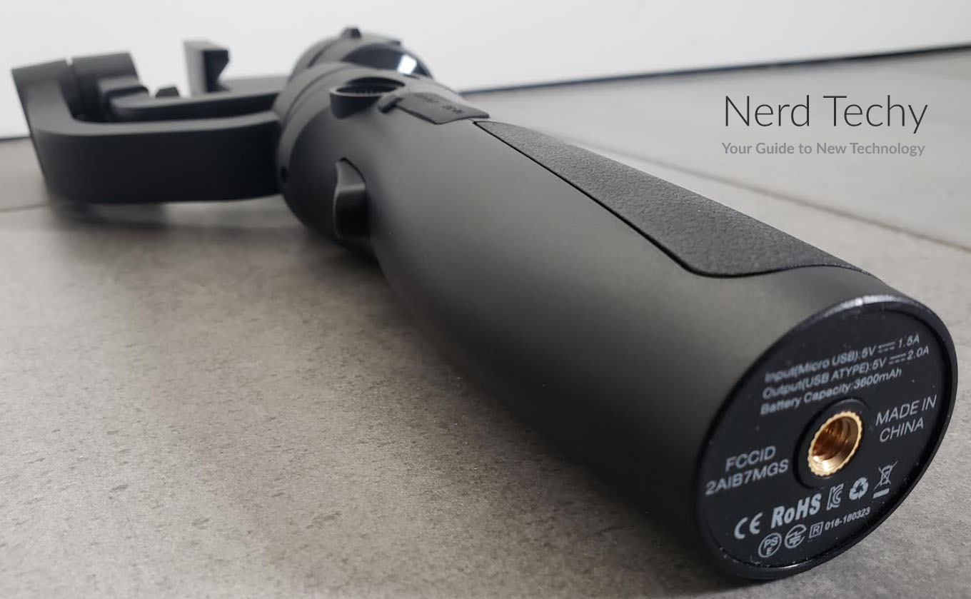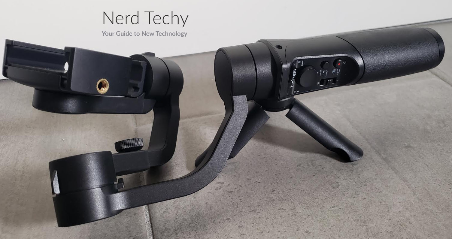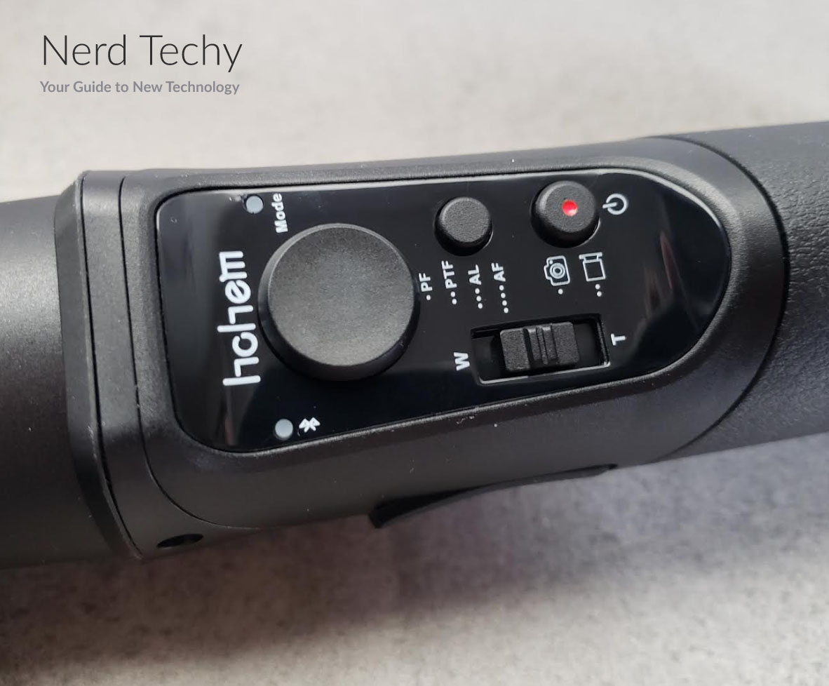 手柄容纳了所有你需要的控制。有一个记录按钮,一个停止按钮,和一个万向节本身的电源开关。还有一个切换模式的按钮,我们一会儿会讲到。所有这些控制都可以很容易地用你的拇指操作,而不需要使用你的另一只手。它还有一个触发器,可以用Hohem的万向框架应用程序编程。电动机的运行温度在14到113度之间,所以除非你在北极,否则你可以全身而行。如果您碰巧有任何问题,您将受到Hohem 12个月的制造商保修。