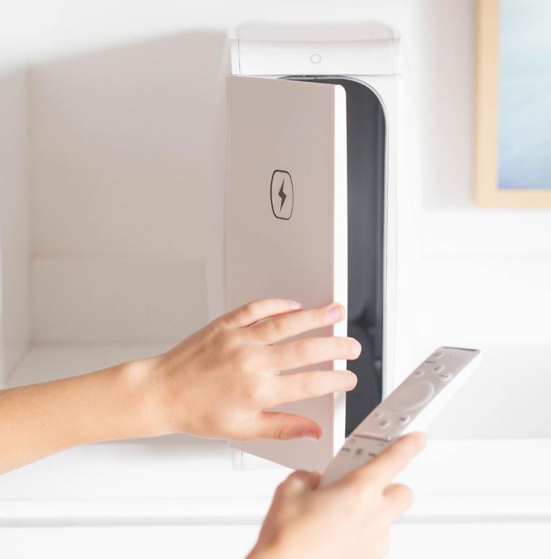 HomeSoap从前面打开,并弹出类似于一个储物柜。在里面,你会看到一对UV-C灯,一个在顶部,一个在底部。这些灯可以杀死99.99%的细菌,并实现360度覆盖。这是由于内部的镜面,它反射了内部所有的光线。就在门里面,在内部的顶部,你会看到一对USB端口。一个是标准的USB Type-A接口,另一个是USB Type-C接口。只要它是插着的,你就可以同时给两个设备充电,即使它们正在被消毒。所以,如果你想清洁你的智能手机或平板电脑,你不必牺牲充电时间。