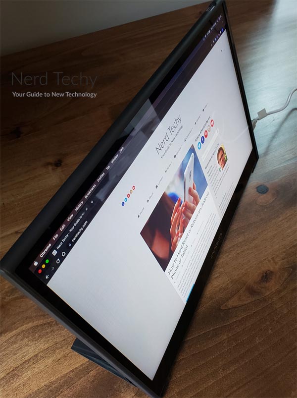 Innocn Monitor本身内置于折叠盒中。当您旅行时,这种情况会像书的封面一样折叠在屏幕上,并提供保护。何时使用显示器时,您可以在半途中展开屏幕以充当展位。关于这种设计的整洁的事情是它在纵向模式下效果很好。你所要做的就是把它翻转它。结果,您不需要带来任何类型的立场。一切都已经放在一起,准备好了。
