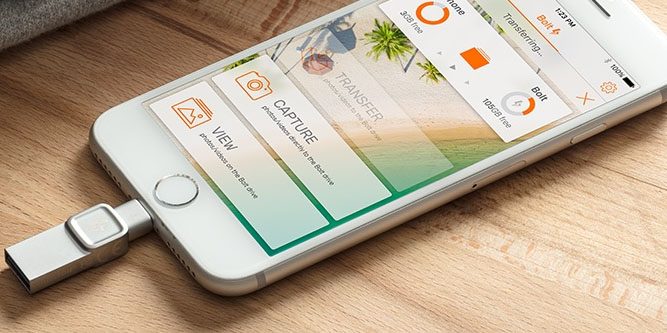 If you’re taking photos while the bolt is in the bottom of your phone, you can choose to have them saved directly to the flash drive, saving your internal memory. Overall, this software makes it easy to work with the limited storage space you may have on your phone.