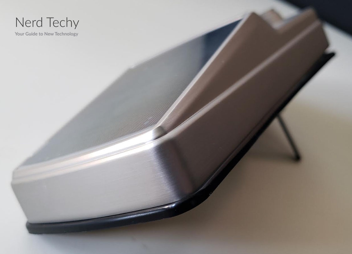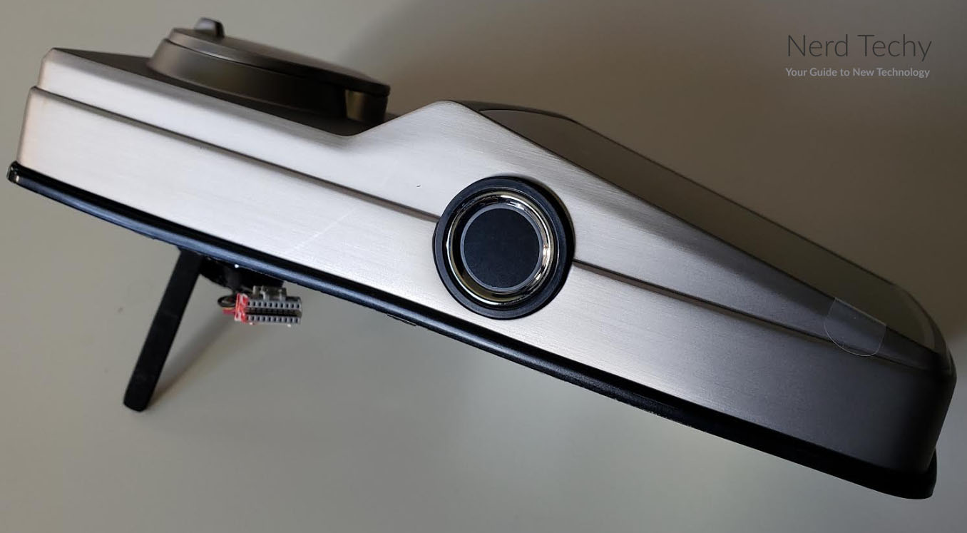 锁的外部部分具有2件式设计。底部配有备用钥匙锁,带有铰链盖,可让雨水和冰块。上部具有带组合和生物识别读卡器的软触摸板。生物识别读卡器具有WiFi和旁边的蓝牙灯,表示有效连接。在焊盘内部是指示锁定电源时的LED。键盘本身具有独特的设计,每个都有三位数字,一系列四个圆形按钮。是的,这意味着两个数字重复两次。这种不寻常的安排有一个原因,我们将进入下一节。