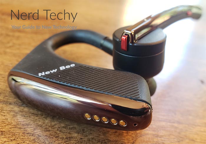 Today, we’re going to review the New Bee M50 Wireless Headset. This is a single-ear headset with a reversible design that can be worn on either side. It has a boom mic, and a long-lasting internal battery. It also provides noise cancellation, so you can carry on conversations in a noisy environment. But does it work as well as advertised, or should you find your new headset somewhere else? To find out, we’ll need to take a deep dive into the M50’s features and operation. We’ll look at the design and the ergonomics, as well as the accessories. We’ll talk about the battery life and the quality of the wireless connection. After that, we’ll discuss the audio quality, and we’ll be ready to render our verdict. Let’s get started!
