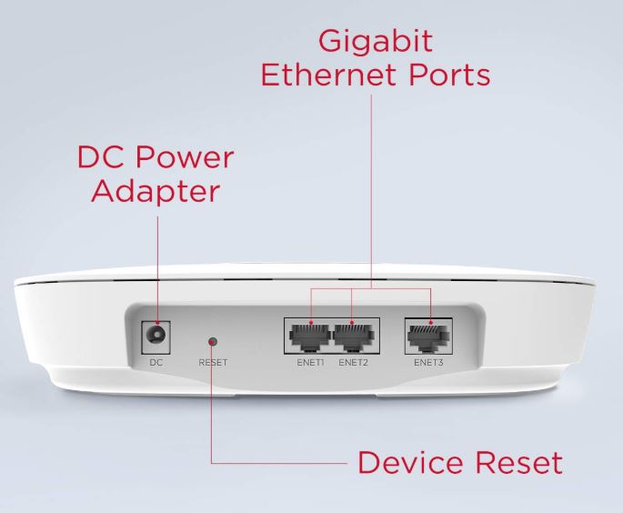 在双频设备的背面,您将找到一对以太网端口,直流电源适配器和重置按钮。与三频段版本的唯一重要的物理差异是添加第三千兆以太网端口。但这基本上只是保持步伐,你正在处理两个单位而不是一个。