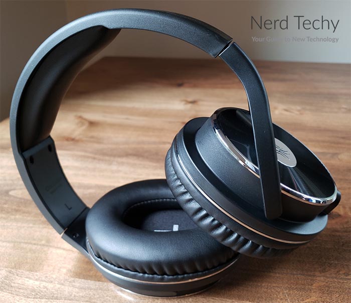 这Oneodio Studio Hifi.设计有可调节的配合。顶部的头带由黑色ABS塑料制成,内金属带。乐队很好,宽,它将重量分布在头上。穿过前三个,有一个厚厚的泡沫垫,穿着漂亮舒适。对于任何一侧,有两个区域可以调整带子以适合。这效果很好,但表带的紧张似乎有点高。耳机剩余安全的耳机没有问题,但如果你有一个更大的头部,他们可能会感到不舒服。