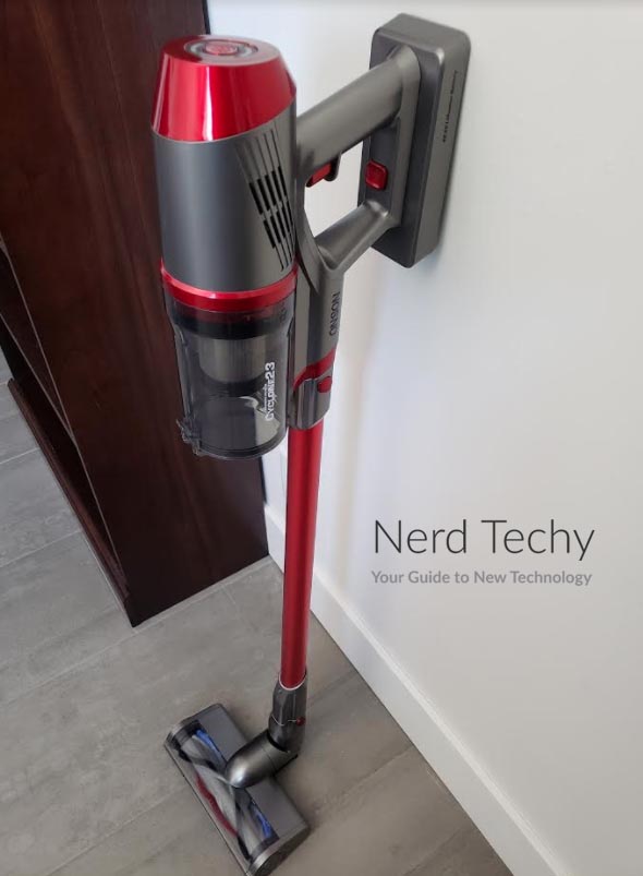 除了真空本身,你还可以得到一个简单的壁挂支架。它有一个简单的drop-in设计,这使它很容易储存你的真空时,它不使用。颜色是石板灰,与真空和附件相匹配。安装很简单,套件中包含一对螺钉和干墙锚。插上电源,插入吸尘器,当你需要它的时候,它就会一直充满电。