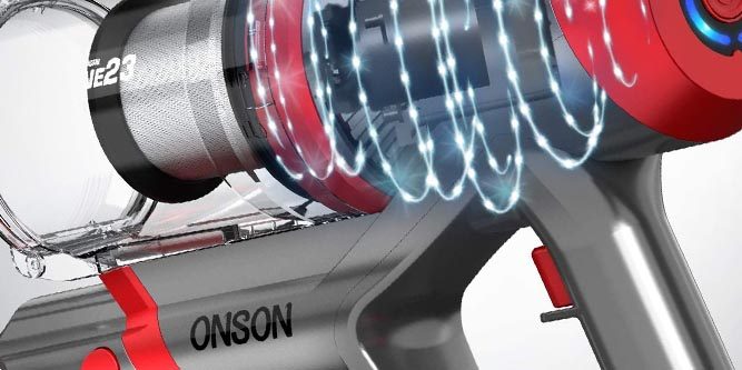 Onson EV696无绳真空运动一个强大的120瓦电机,比大多数棒式vac电机更强大。该电机提供高达11000帕斯卡(Pa)的吸力。相比之下,你的平均直立真空可以提供14000pa的吸力。然而,这并不是一个公平的苹果与苹果的比较。一个普通的立式真空可以容纳一个大得多的电机,它能提供更大的功率。考虑到较小的尺寸,11000pa是不错的。在大多数情况下,它比你需要的要多。该电机也可以运行在一个较慢的,7,000Pa的速度。这足够用于日常清洁,并尽可能节省电池寿命。