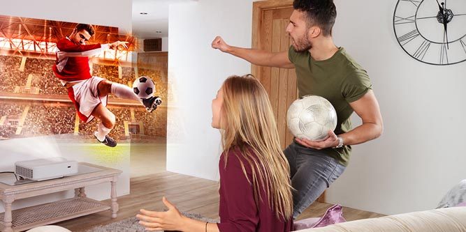 这超短的投掷投影仪是设计给你一个大屏幕,而不需要一个花哨的安装。虽然有些投影仪需要10英尺或更多的空间,但这款投影仪在离墙壁只有一英尺的地方就能创造出100英寸的屏幕。它使用3500流明灯产生明亮的图像,图像丰富生动。但这足以满足现代游戏的需求吗?我们伸手去亲身去看看。
