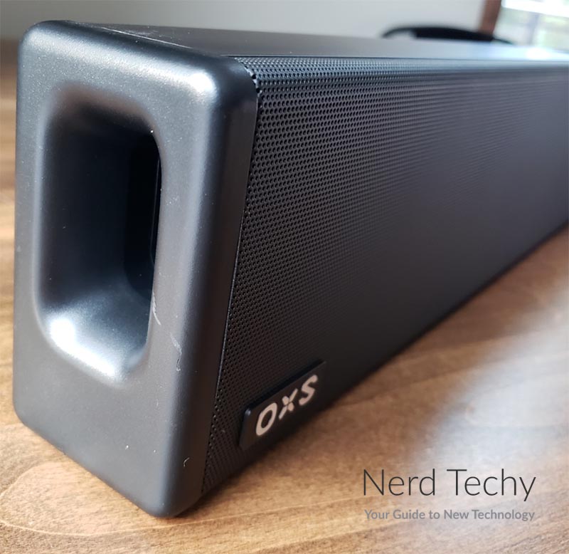 We appreciate the fact that the inputs are located on the top-side, for easy access. However, this makes the cords visible from the front side when it’s near your TV. It isn’t a big deal for most, but visually we think OXS could have included two sets of inputs; one on the top and one on the back.