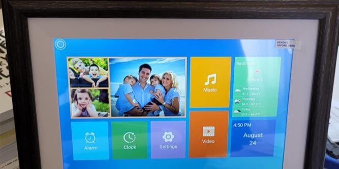 除此之外,这个框架还可以执行许多替代功能。它可以被设置为显示数字时钟,具有大的、高可见的数字。你可以设置一个闹钟,这样它就可以作为床头闹钟。有一个日历模式,所以你可以计划你的一天。最后,还有一个内置的天气预报应用。记住,天气应用程序要求你有互联网连接。