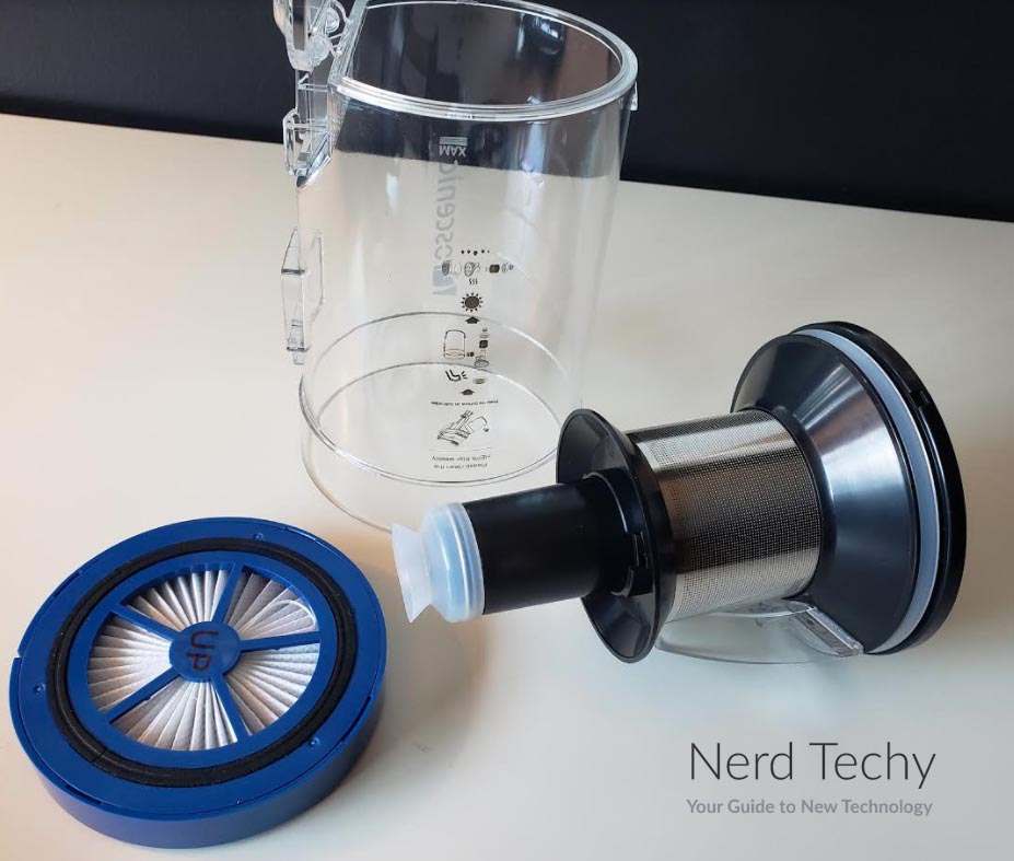 过滤器和垃圾桶都很容易清洗。只需将垃圾桶和滤芯取出,用水清洗即可。事实上,Proscenic建议你定期清洗它们,以获得最佳效果。当你清洗过滤器时,确保让水从干净的一面流向脏的一面。这使得清洁变得轻而易举。然后,让过滤器干燥大约一个小时,然后再使用真空吸尘器。
