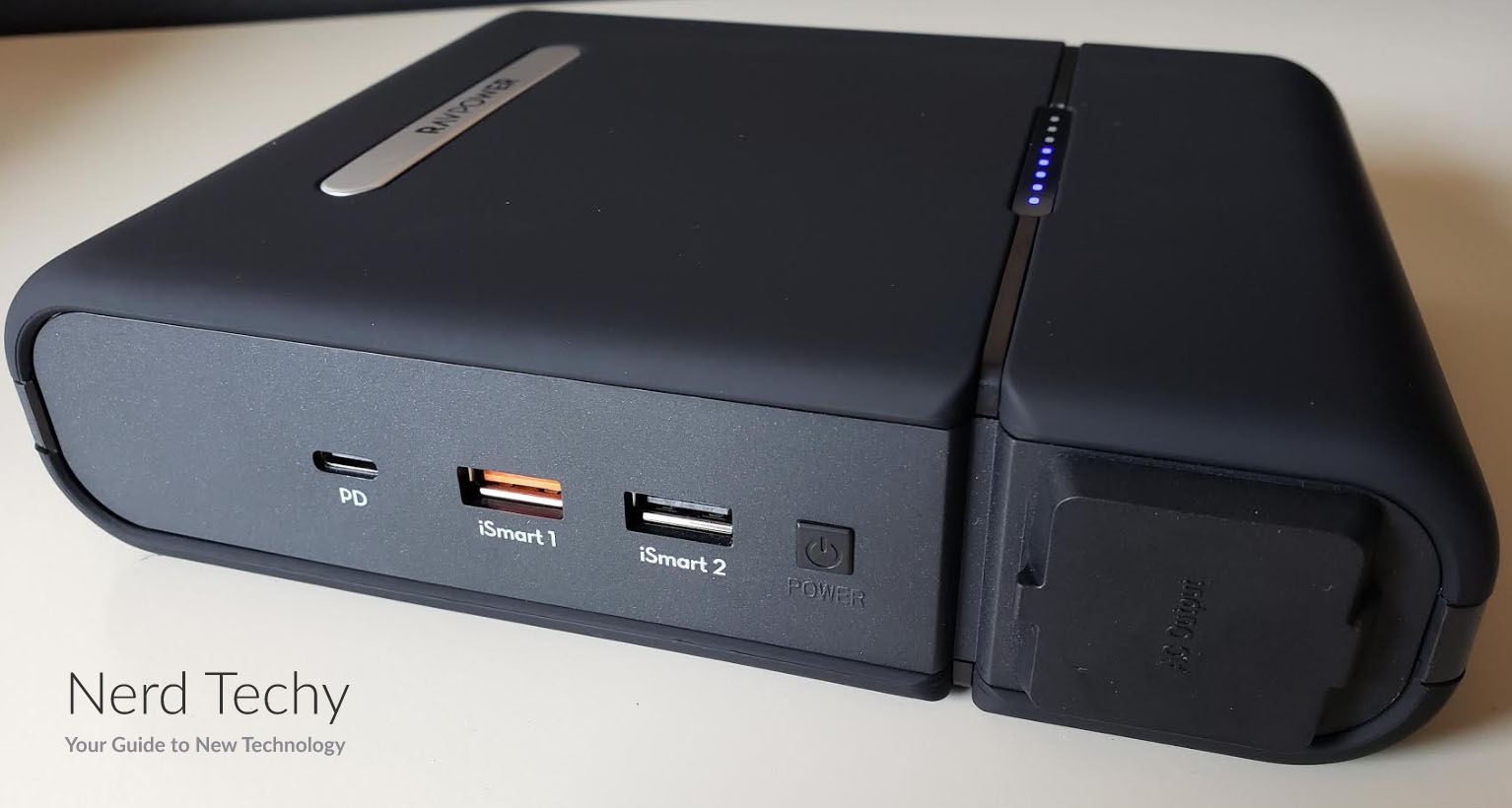 接下来,让我们看看两个USB Type-A端口。它们都使用了RAVPower的iSmart技术。该技术根据设备的特定需求调整电流。并非所有智能手机在默认电压和安培下都能充电。iSmart充电器会使用正确的电流,确保你获得最好的电池寿命。