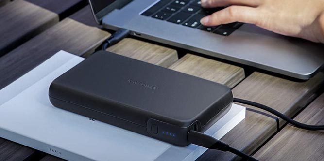 对于带有桶式适配器的笔记本电脑,使用带有AC端口的电源组通常更容易。这样,你就可以使用笔记本电脑的普通电源线。的RP-PB055这是一个很好的选择。它配备了一个100瓦的交流电源插座和第二个USB Type-A接口,容量为30000毫安时。不过,它比我们今天讨论的电源银行要贵一些。