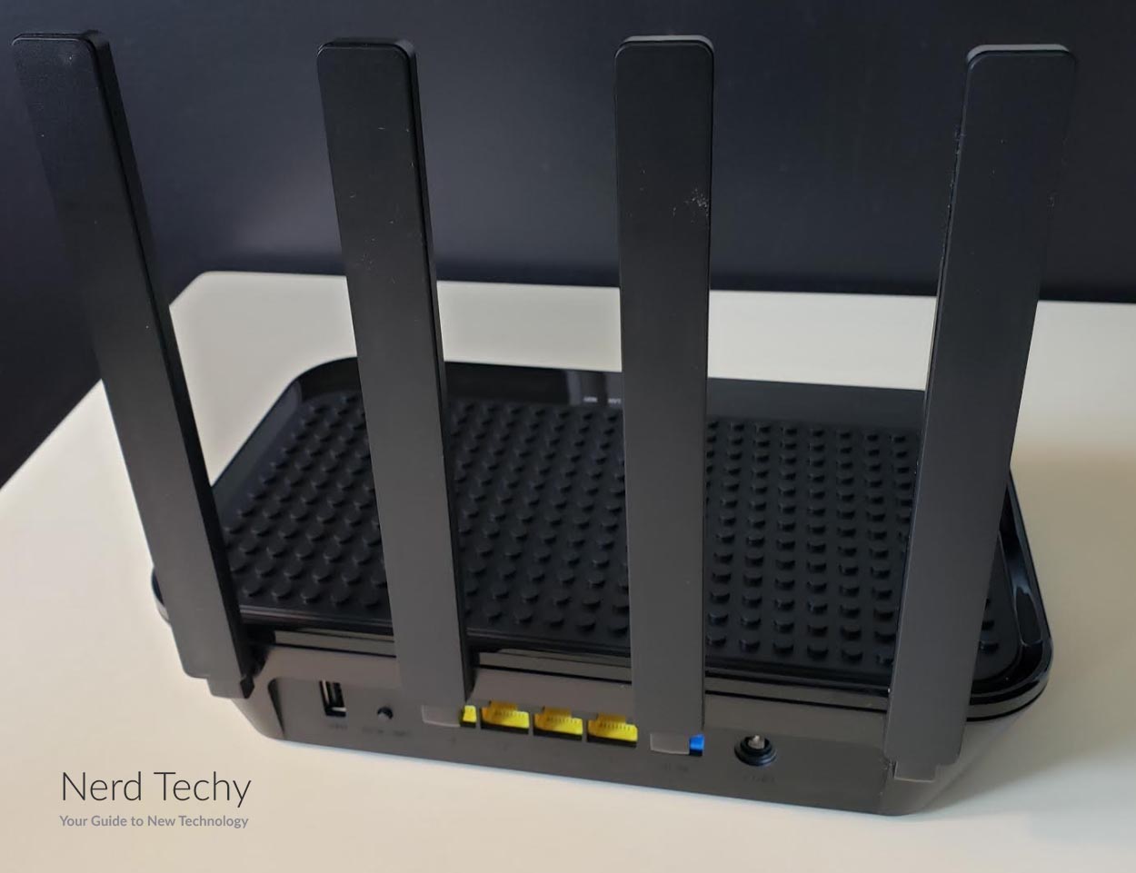 Should you want the security and stability of a wired connection, you’ll also benefit from four wired Ethernet ports, all of which are lined up on the back of the router. An additional USB 2.0 port is available for downloading content, adding updates, or facilitating another USB connection for another purpose.