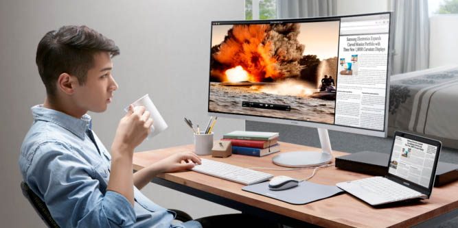 为什么这很重要?嗯,显示器的曲线是根据眼睛的工作原理设计的。如果你坐在显示器的正中央,屏幕中间比角落更靠近你的眼睛。这意味着有一点扭曲。在你看来它可能是方形的,但那只是因为你的大脑会自然地纠正这种扭曲。但当显示器弯曲时,屏幕的每个部分(水平方向)与你眼睛的距离是相同的。这种看似微妙的变化让视觉效果更加身临其境,仿佛图像就在你身边。这是你必须经历才能欣赏的东西。这仍然是一项新技术,但它是市场上我们最喜欢的显示功能之一。
