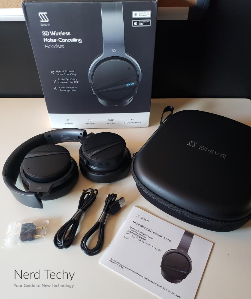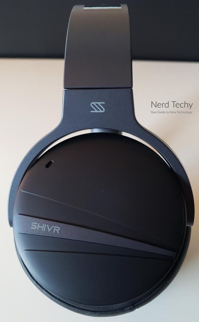 On the bottom of the left ear cup, you’ll find a USB Type-C charging port. On the top of the right ear cup, you’ll find an on/off button that’s easy to find by touch. It offers good tactile response, so you’ll be able to easily tell when you’ve pressed the button. Next to the power button, you’ll find another button for activating or deactivating the active noise cancelling. There’s also a button for activating the 3D’s conversation mode, which we’ll discuss more later. All other controls are performed from your MP3 player or smartphone. This might sound limiting at first. However, as we’ll see, SHIVR includes some extra features that make this easier than it sounds.