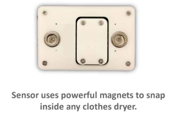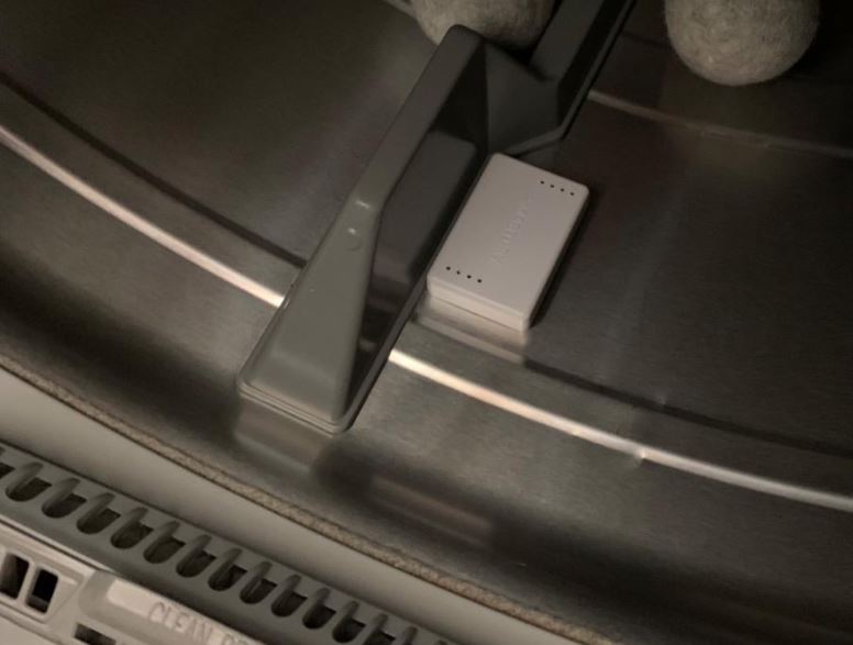 传感器本身是完全无线的,所以不用担心打开烘干机,把东西插到里面的电路或机器上。相反,传感器在背部使用强力磁铁,可以立即固定到位。该应用程序会告诉您传感器的理想位置(通常是旋转轮的内部)。