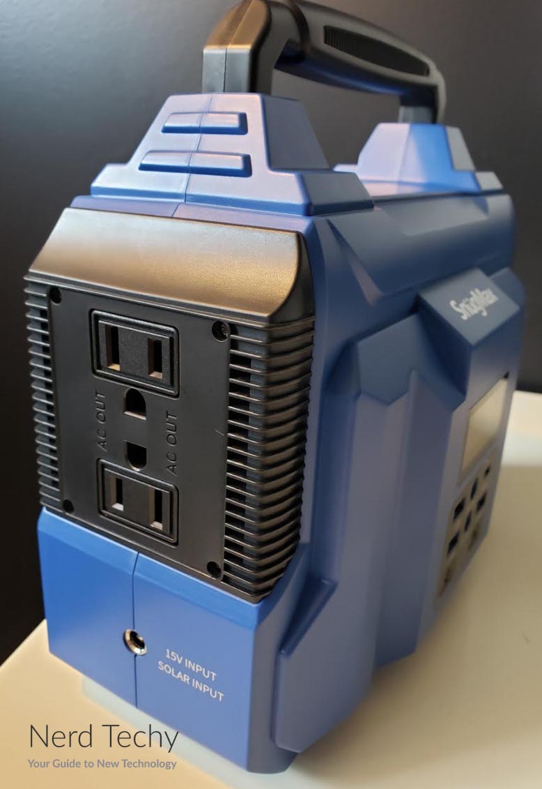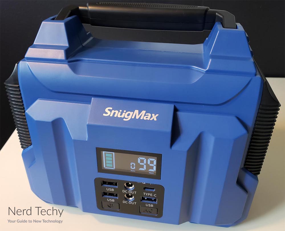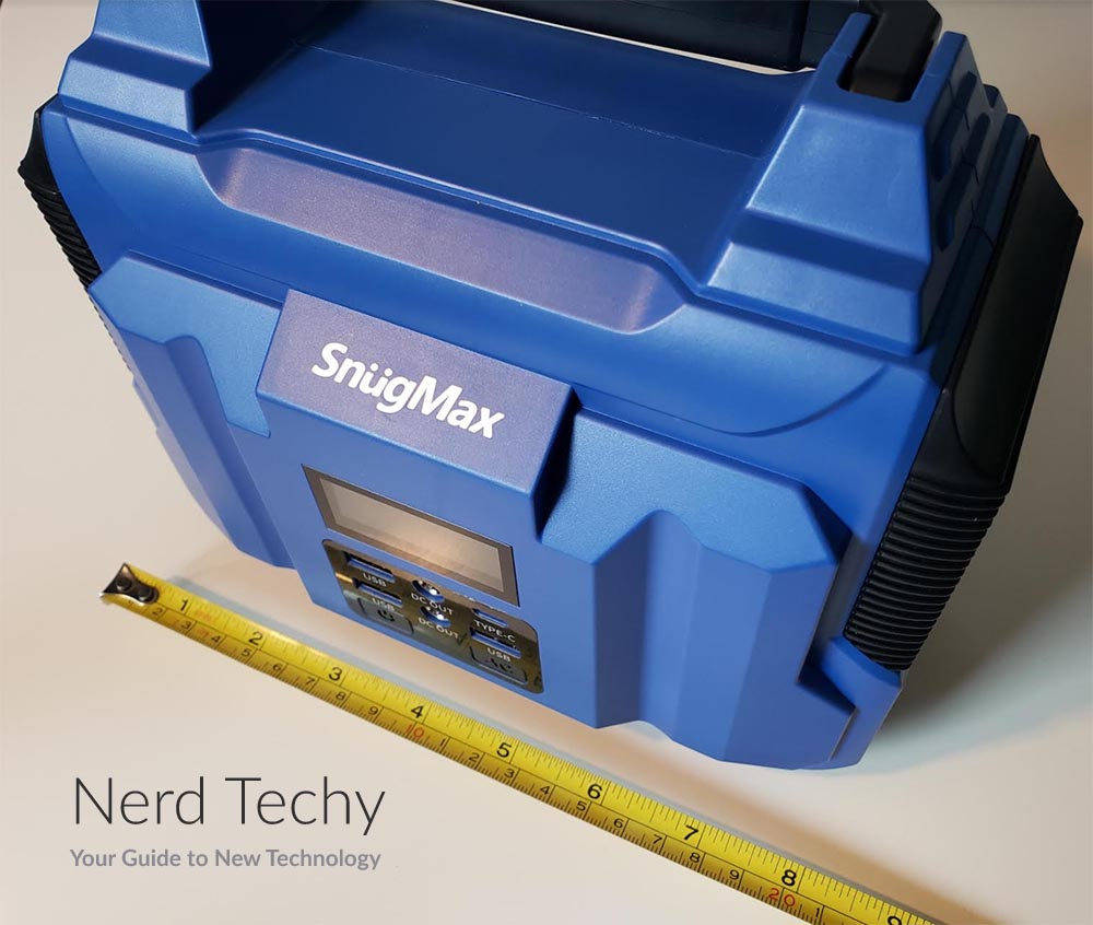 的SnugMax Vickers 200便携式电站是一座中等规模的发电站,却出奇地坚固。它宽12英寸,高8.9英寸,厚6.2英寸。它的重量为6.29磅,比标准粘土砖略重。外壳的主体由耐用的蓝色聚合物构成,具有抗压的内部框架。这使得它可以安全携带到任何你想要的地方和任何时间。即使你把它掉在地上,它也不太可能承受任何严重的损害。车架内嵌一个宽大舒适的把手,便于运输。因此,你一开始就不会轻易放弃它。手柄也是可折叠的,合起来的时候高度会减少大约一英寸。