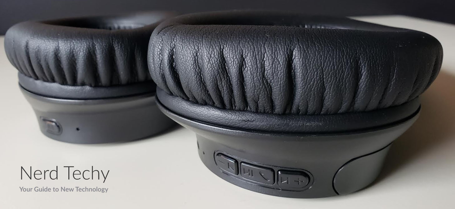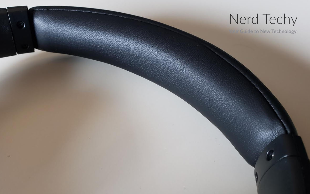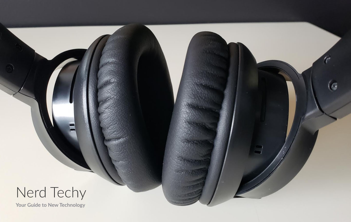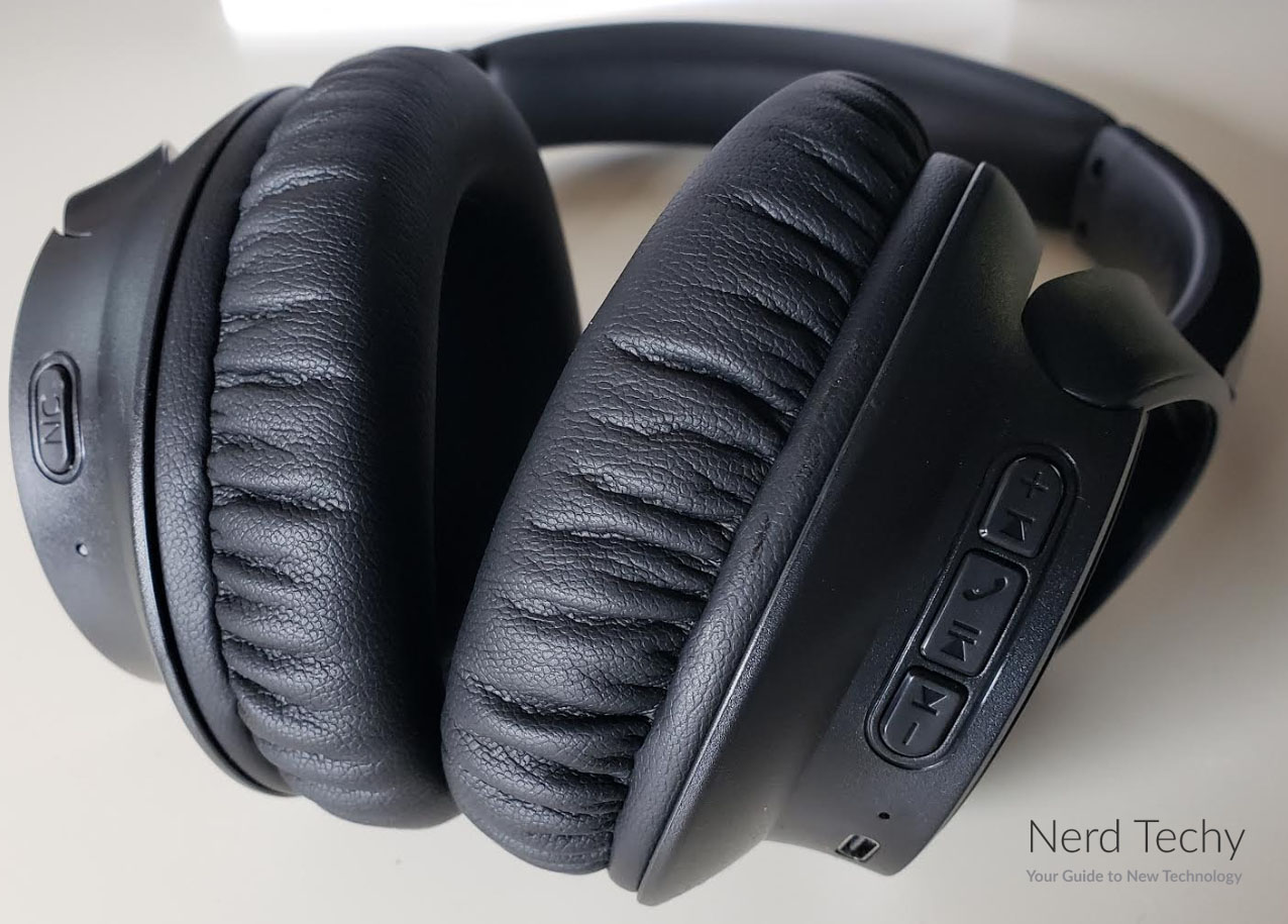 耳杯有一个铝壳,与拉丝完成,这是有吸引力的看。它们用人造皮革做衬垫,穿起来很舒服。这皮革是很好的填充,并提供了一个安全的密封对你的太阳穴和两侧的头。这与ANCBT501头带的中等夹紧力很好地配合。它足够坚固,可以形成一个很好的密封,但又不是太坚固,以至于不舒服。