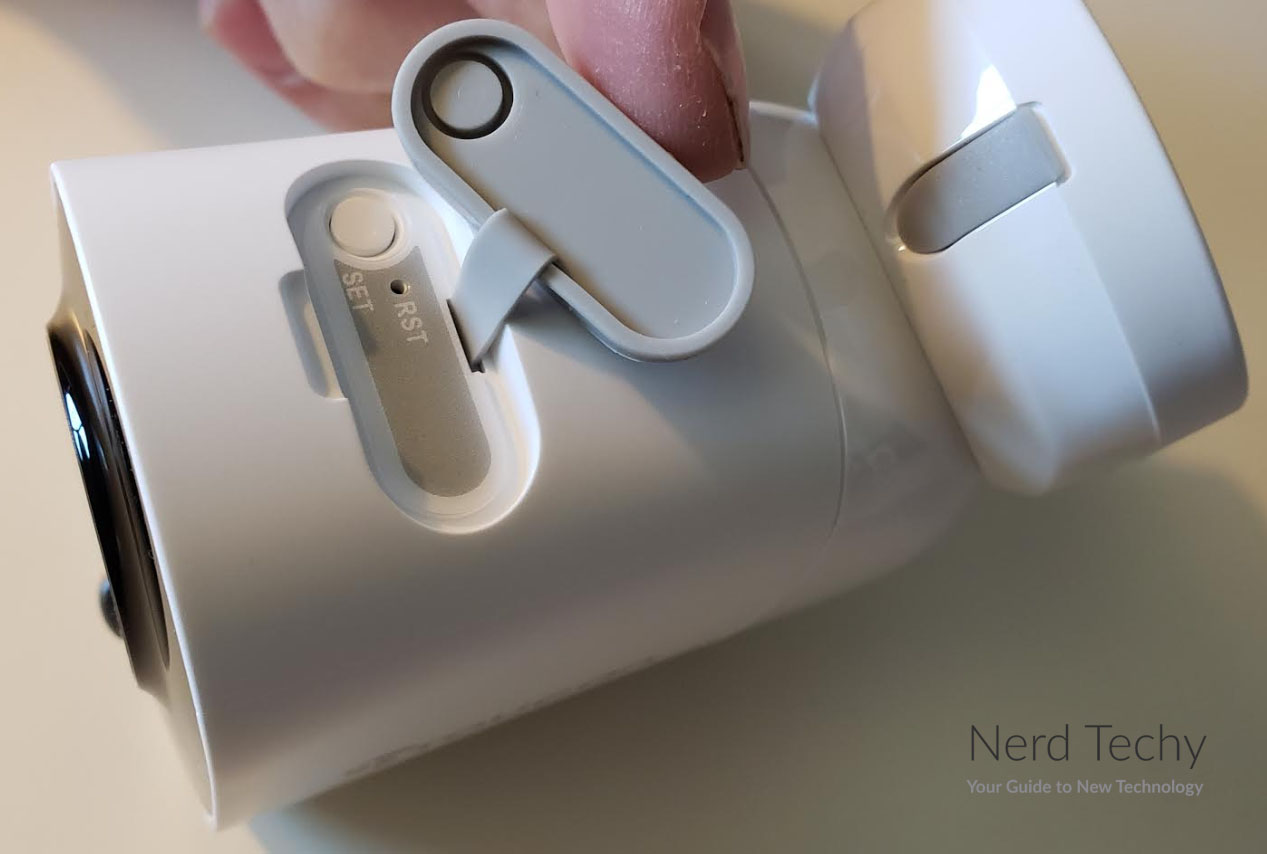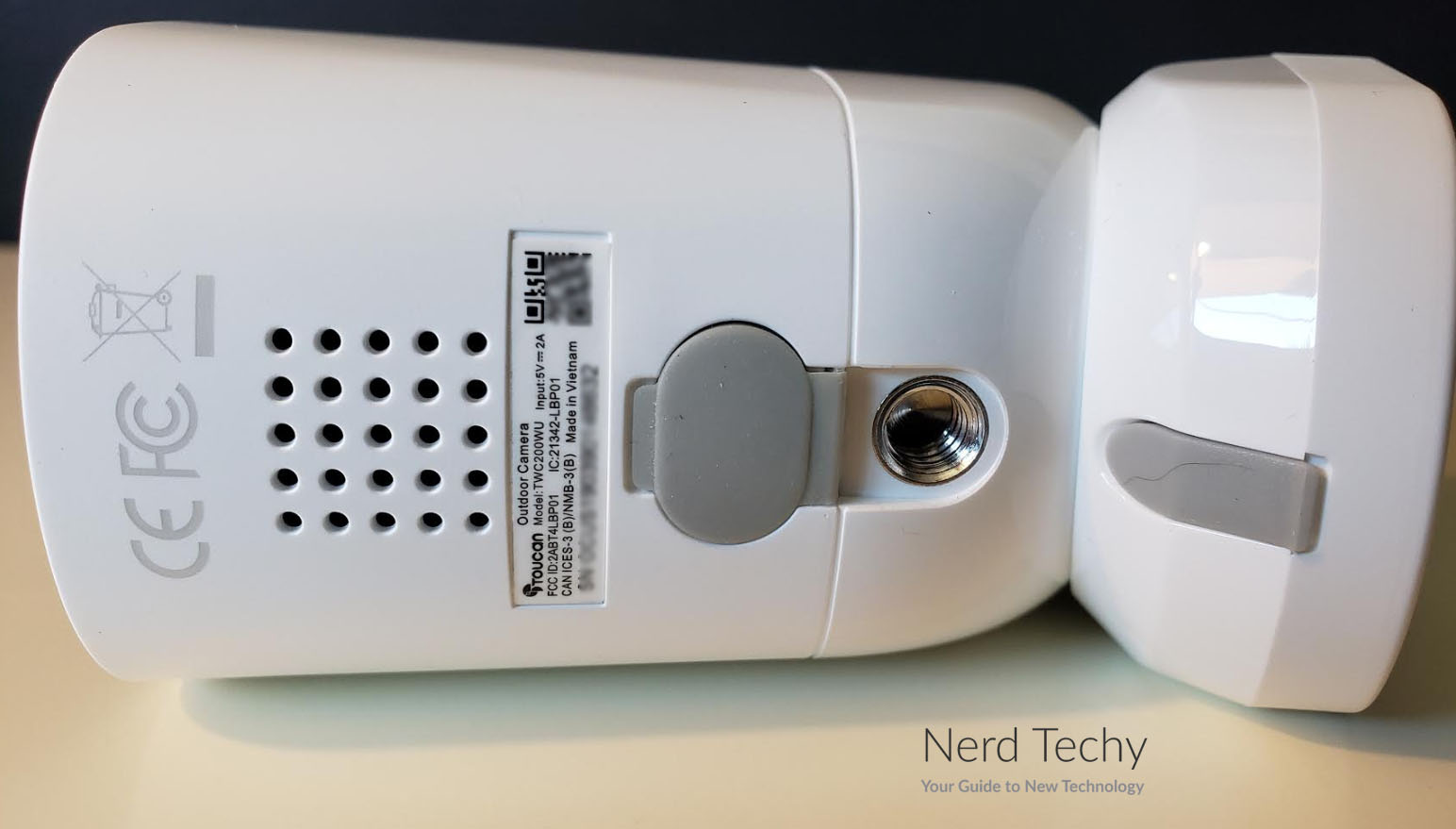 的巨嘴鸟(可充电)电池供电的无线户外安全摄像头有着时尚、现代的设计。它有一个白色的外壳,有弯曲、圆润的边缘,很容易看。在侧面,有一对灰色巨嘴鸟的标志。在顶部,有一个灰色的橡胶塞覆盖USB充电接口。只要安装好这个塞子,阀体就可以防风雨。你可以把相机放在暴露在雨中的地方,不会有任何问题。充电后一定要把插头换掉。