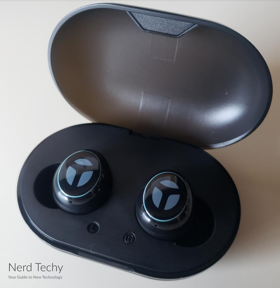 乍一看,这个Tranya B530真实无线耳塞拥有相当简单,直截了当的外观。就在盒子中,您会注意到耳塞包含在蛤壳设计携带案例中,携带案例使作为充电器翻倍。打开它,你会看到每个耳塞在自己的压痕中独立地休息,两个金属尖头在他们不使用时自动给芽充电。用“l”和“r”清楚地表明您的左耳道或右耳道的意思。