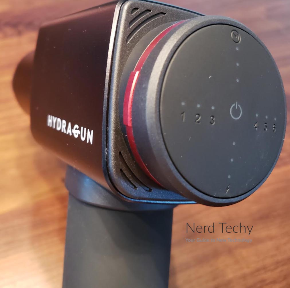 枪管的背面有一个轮子,可以让你在6种按摩速度之间切换。你可以在1200转和3200转之间切换,在400转的间隔。有足够大的速度范围,你可以做一个轻微的按摩,如果你受伤了,也可以做一些更重的按摩。