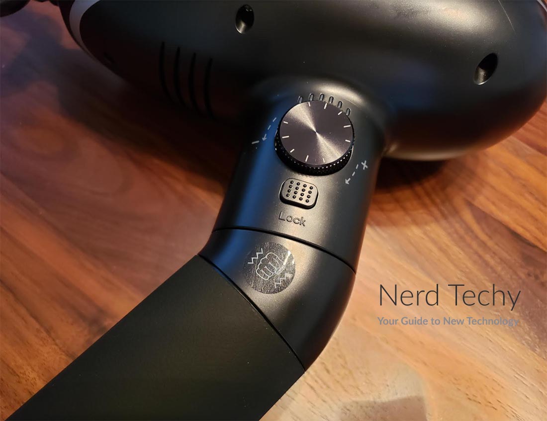乌里卡Pro 1的手柄有一定的角度,当你试图触碰那些难以触及的部位时,比如背部中部或腿后,这样更容易握住和定位。总的来说,手柄设计增加了30%的灵活性,并可以旋转180度,取决于你需要使用它。手柄本身有一个可触摸的橡胶手柄,所以在操作时不会打滑,所以摸起来很软。整体的人体工程学设计使它非常舒适使用长时间的按摩会议。