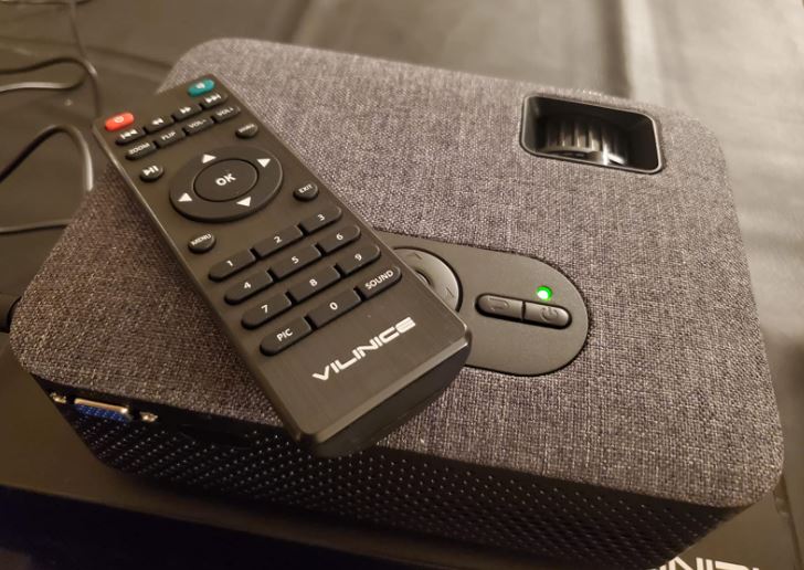 在设备的背面,您会注意到顶部的控制面板。这具有一组基本控件,包括播放,暂停,快进和倒带。还有一组用于导航投影仪菜单的按钮。在那里,您可以调整亮度,色彩平衡,清晰度和其他设置。如果您喜欢使用遥控器,则不必担心。包含在包装中,它可以完成内置控件可以做的所有事情。也就是说,包装中没有电池。您需要一对AAA来使远程工作。但是,一旦安装了一对,它们应该持续一年多。