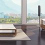 镜头内置在外壳的前面,朝右侧。它仅略微突出,仅略微打破了原本平滑的轮廓。在镜头后面的房屋顶部,您会看到一对表盘。这些用于分别调整垂直和水平钥匙石。每个方向都可以在任一方向上调节15度。这使得5000L易于定位,因为不必将其指向屏幕。它可以坐在地板上,挂在天花板上,或者在侧面的桌子上休息。只是不要超过15度,您将能够获得完美的图片。