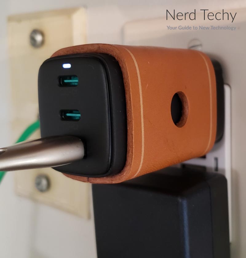 Today, we’re going to review theVogDUO 65W PD GaN Fast Charger. This is a compact AC adapter that plugs into your power outlet. It sports three USB outlets, enabling you to charge three devices simultaneously. But how well does it work, and what can you actually charge with it? How easy is it to transport, and how durable is it? To answer those questions, we’ll need to take a closer look at this unique USB charger. We’ll start by going over the physical design, including the unique leather wrap. Next, we’ll consider the charging power, and what it’s compatible with. We’ll wrap up by discussing safety features and anything else we’ve missed. Let’s take a closer look, and see how this USB fast charger compares to the competition!