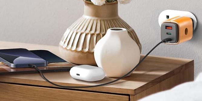 This charger is compatible with any modern USB device that draws 65 watts or less. This includes all smartphones and tablets, wireless earbuds, and most power banks. It’s capable of charging any USB laptop, but you’ll run into issues with larger laptops. Those machines draw more than 65 watts when they’re running, so they’ll only charge when they’re off.