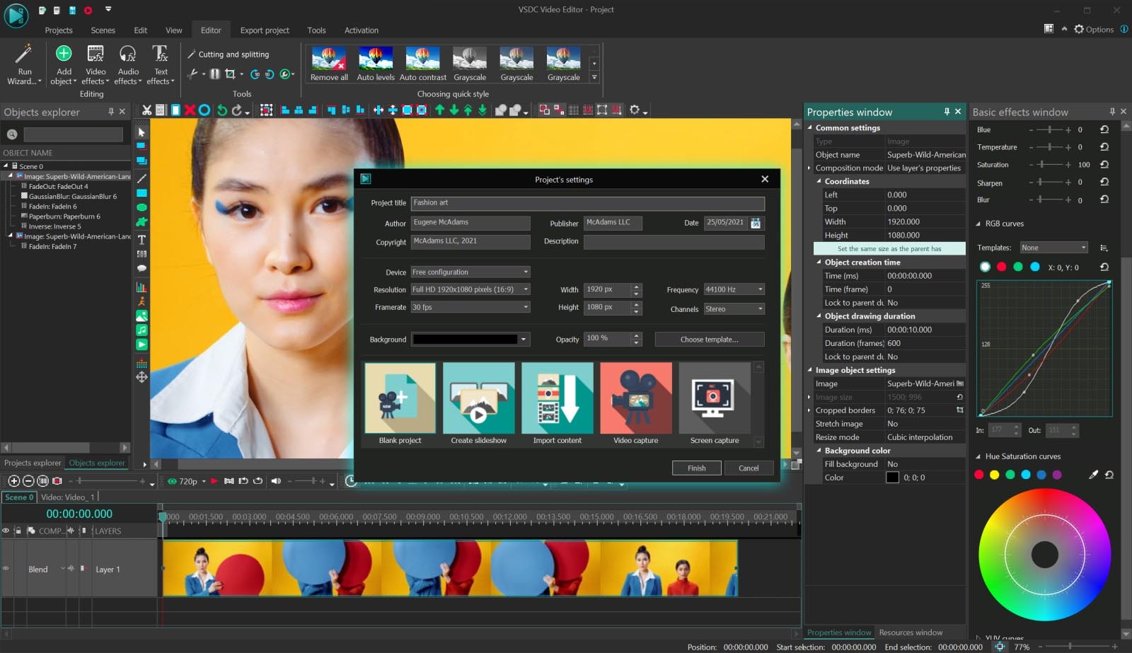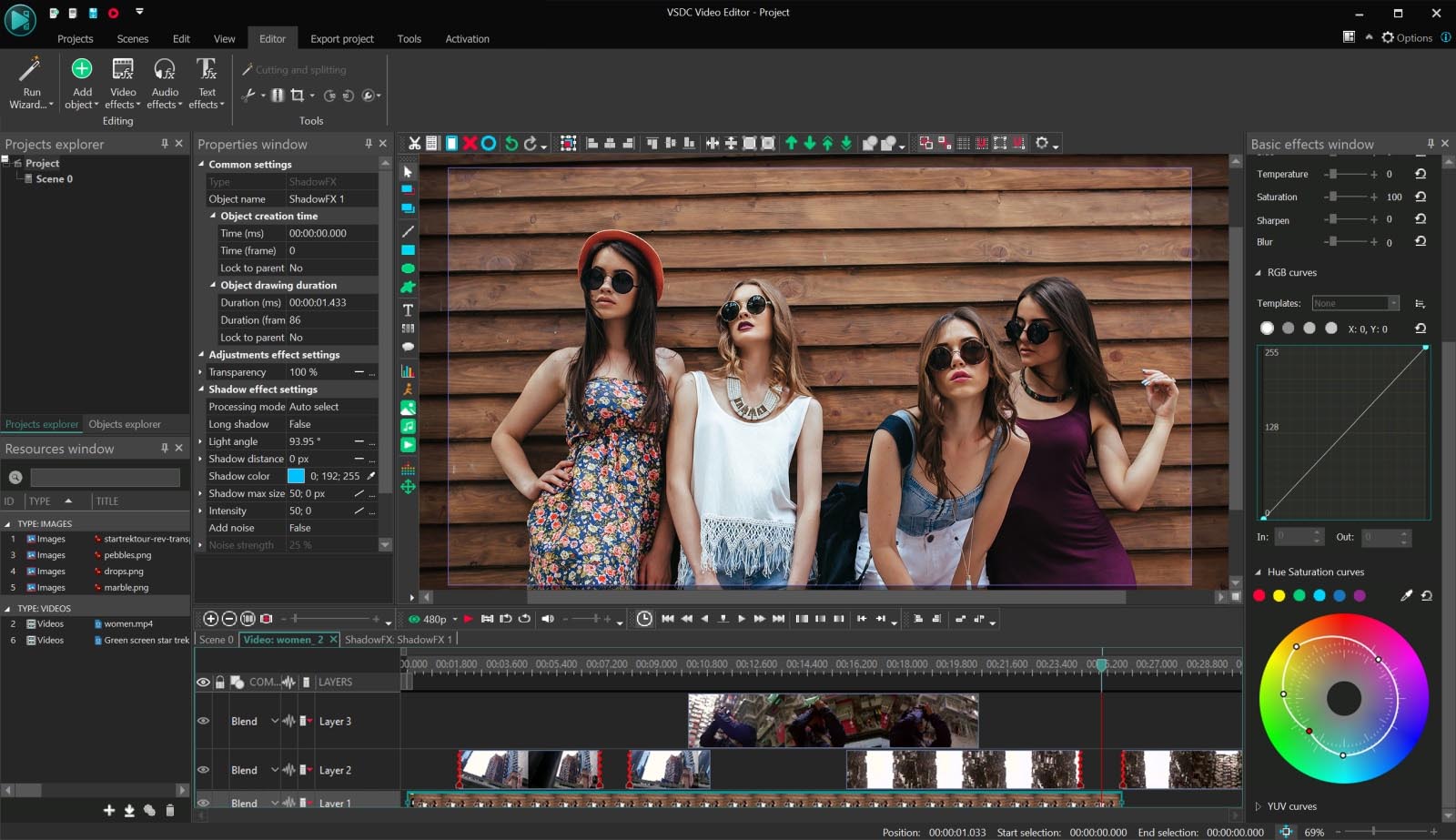 VSDC吹捧他们的“非线性”编辑系统,但实际上它是线性的,就像所有的视频编辑器一样。您导入文件并将剪辑拖放到一个时间轴上,以便对它们进行安排。他们所谓的“非线性”是指你可以在时间轴的同一点堆叠多个文件。不同的文件占用不同的音轨,您可以拥有任意多的音轨。换句话说,不同的视频和音频剪辑可以无限地组合在一起。这比单一的时间表提供了更多的灵活性。