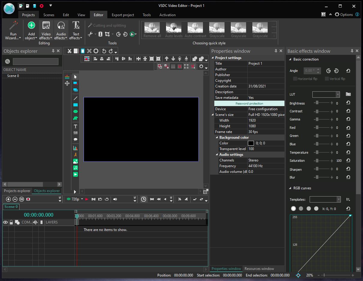 在编辑时,您将在时间轴上方看到一个预览面板。当您沿着时间轴移动光标时,此面板将显示屏幕上的内容。也就是说,没有全屏预览。由于VSDC处理文件的方式,小预览也容易出现延迟。也就是说,它仍然可以完美地用于编辑目的。其他日常功能也很容易访问。剪切、拼接和拖动都是非常直观的。